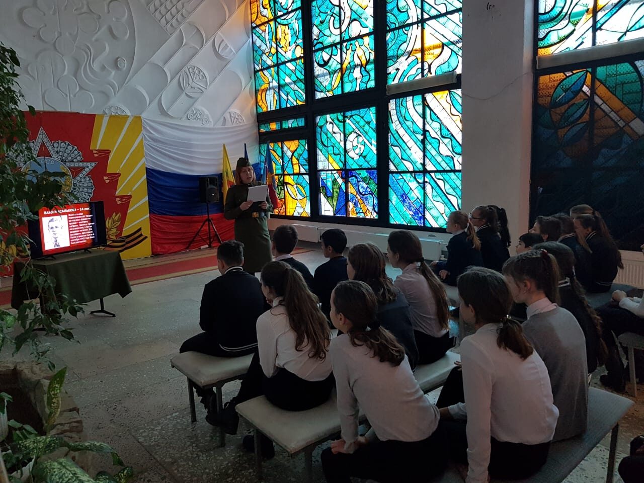 Видеопрезентацию «Маленькие герои большой войны» представила молодой депутат Краснострельского сельского поселения Яна Косолапова. В ходе презентации она рассказала школьникам о подвигах юных героев Кубани: Муси Пинкензона, Жени Попова, Виталика и Лены Голубятниковых, Вити Новицкого, и многих других ребятах.