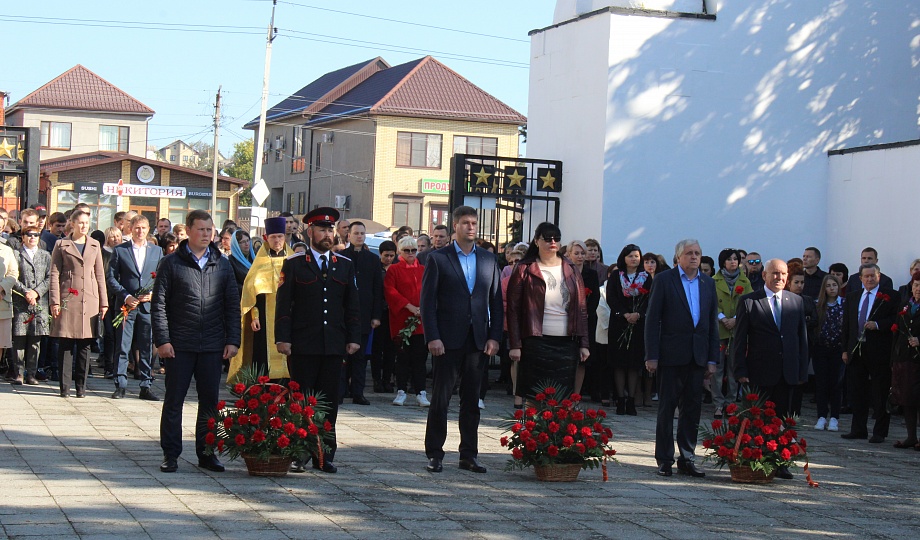 На территории мемориала "Вечный огонь" Темрюкского городского поселения состоялся торжественный митинг по случаю празднования 76-ой годовщины освобождения Таманского полуострова от немецко-фашистских захватчиков.