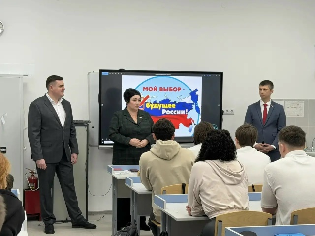 В рамках цикла мероприятий, посвящённых Дню молодого избирателя на базе школы № 3 города Темрюка для учащихся старших классов был проведён информационный час «Мой выбор – будущее России!». В мероприятии приняли участие депутаты районного Совета: наставник молодых депутатов Светлана Волкова, председатель Совета молодых депутатов Роман Орёл, Максим Калиниченко Проведение таких мероприятий формирует у учащихся чувство долга, патриотизма, ответственности за будущее своей страны. Депутаты вместе с учащимися обсудили вопросы: что такое выборы, для чего проходят выборы, участие в выборах право или обязанность, что такое избирательное право, каковы принципы избирательного права?