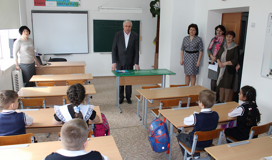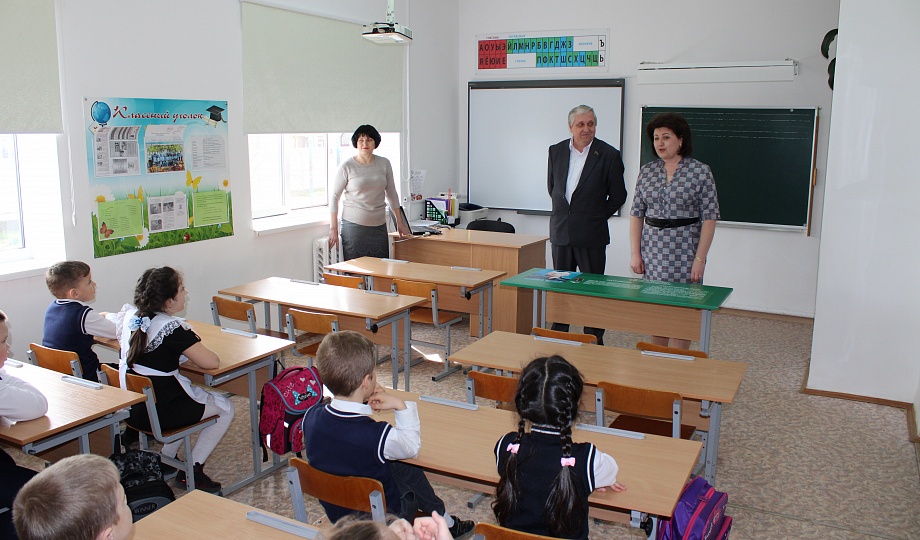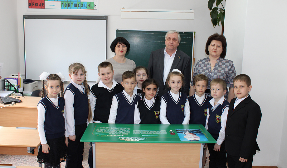 На церемонии открытии парты Героя присутствовали почётные гости – председатель Совета муниципального образования Темрюкский район Александр Шерстнёв, молодой депутат Совета Старотитаровского сельского поселения Инга Петренко.