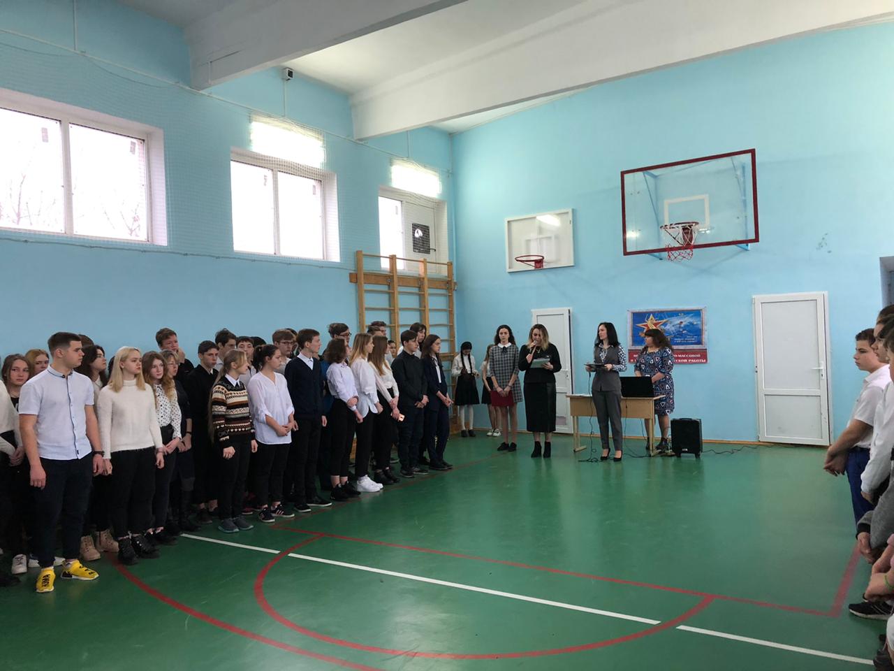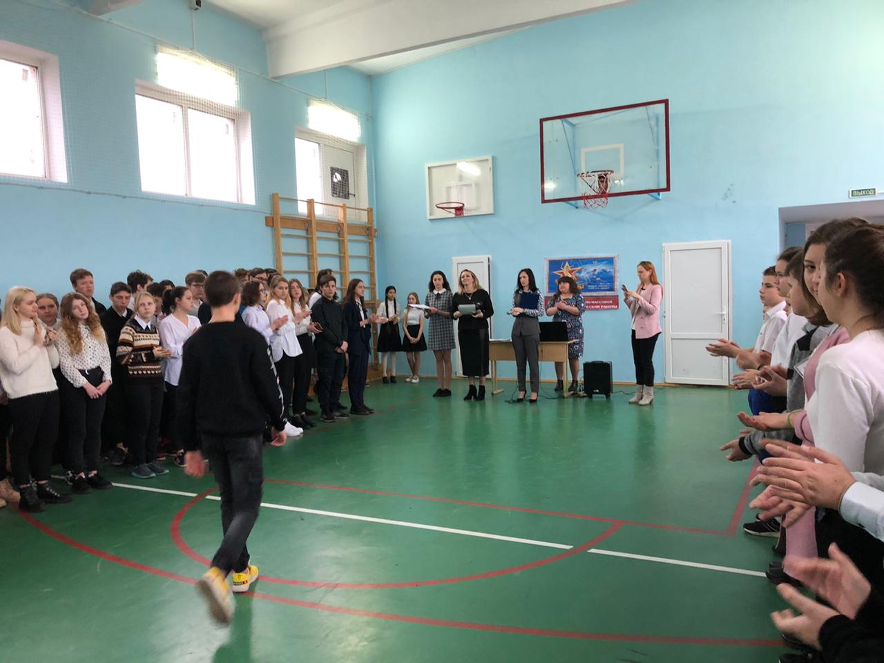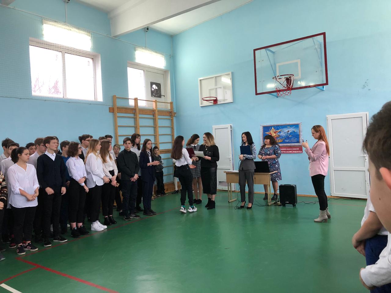 На линейке, по случаю закрытия цикла мероприятий, посвященных Году Памяти и Славы, в МБОУ СОШ № 11 присутствовала молодой депутат поселения Алёна Лукьянова, которая поблагодарила всех участников в работе цикла мероприятий. Она наградила учащихся, активно принимавших участие в мероприятиях месячника, почетными грамотами.