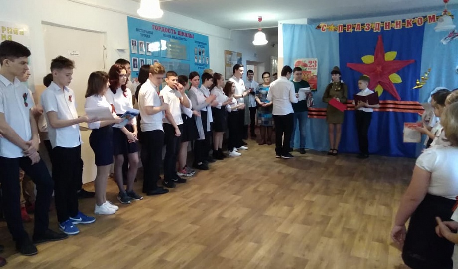 На линейке, по случаю закрытия цикла мероприятий, посвященных Году Памяти и Славы, в МБОУ СОШ № 24 присутствовал молодой депутат поселения Артём Шмелёв, который поблагодарил всех участников в работе цикла мероприятий. Он наградил учащихся, активно принимавших участие в мероприятиях месячника, почетными грамотами.