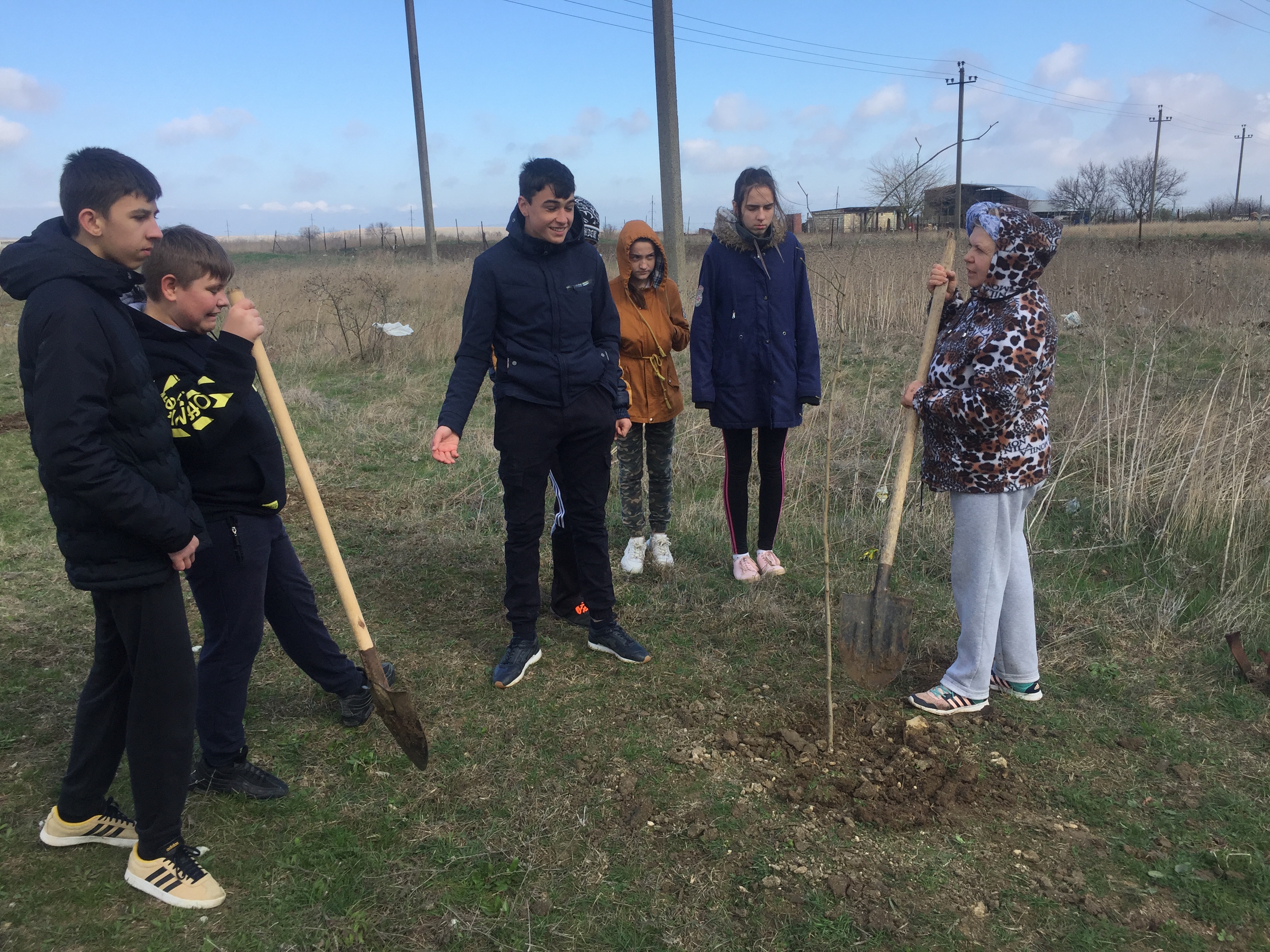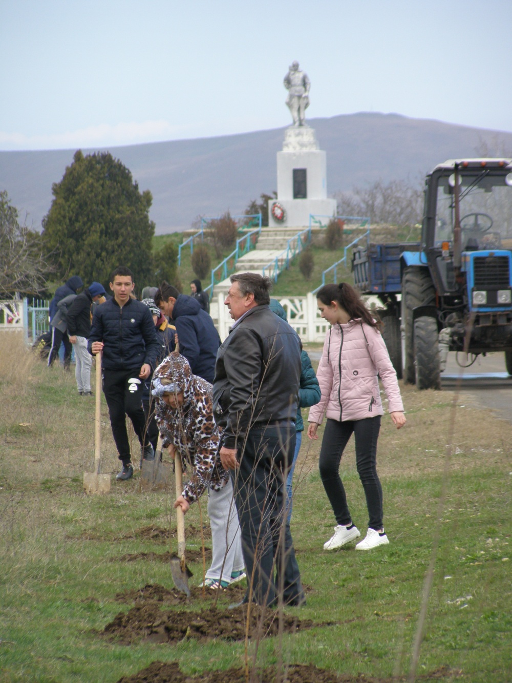 В посёлке Виноградный Вышестеблиевского сельского сельского поселения прошла акция "Сад Памяти", которая проходит по всей стране в преддверии 75-летия Победы в Великой Отечественной войне 1941-1945 гг. В церемонии посадке деревьев приняли участие молодые депутаты поселения Полина Ильинова и Сергей Зобов.