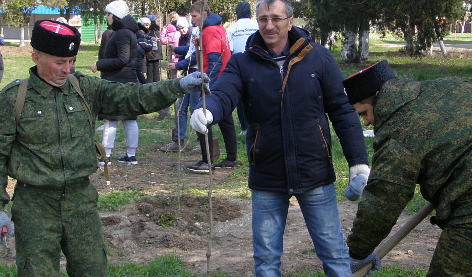 В Вышестеблиевском сельском поселении прошла всероссийская акция "Сад Памяти", в которой приняли участие молодые депутаты Совета поселения Полина Ильинова, Виталий Дыкань и Сергей Зобов.