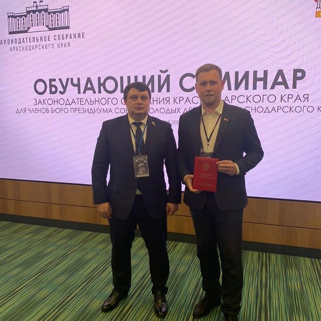 С 1 по 2 апреля 2021 года в инновационном центре «Аквариум» г. Краснодара Законодательное Собрание Краснодарского края организовало семинар для председателей Советов молодых депутатов. В работе семинара принял участие Юрий Васильев. ⠀На протяжении двух дней эксперты Законодательного Собрания, а также специалисты и руководители Государственных учреждений и структур обучали молодых парламентариев. Завершился семинар вручением сертификатов о прохождении обучения.