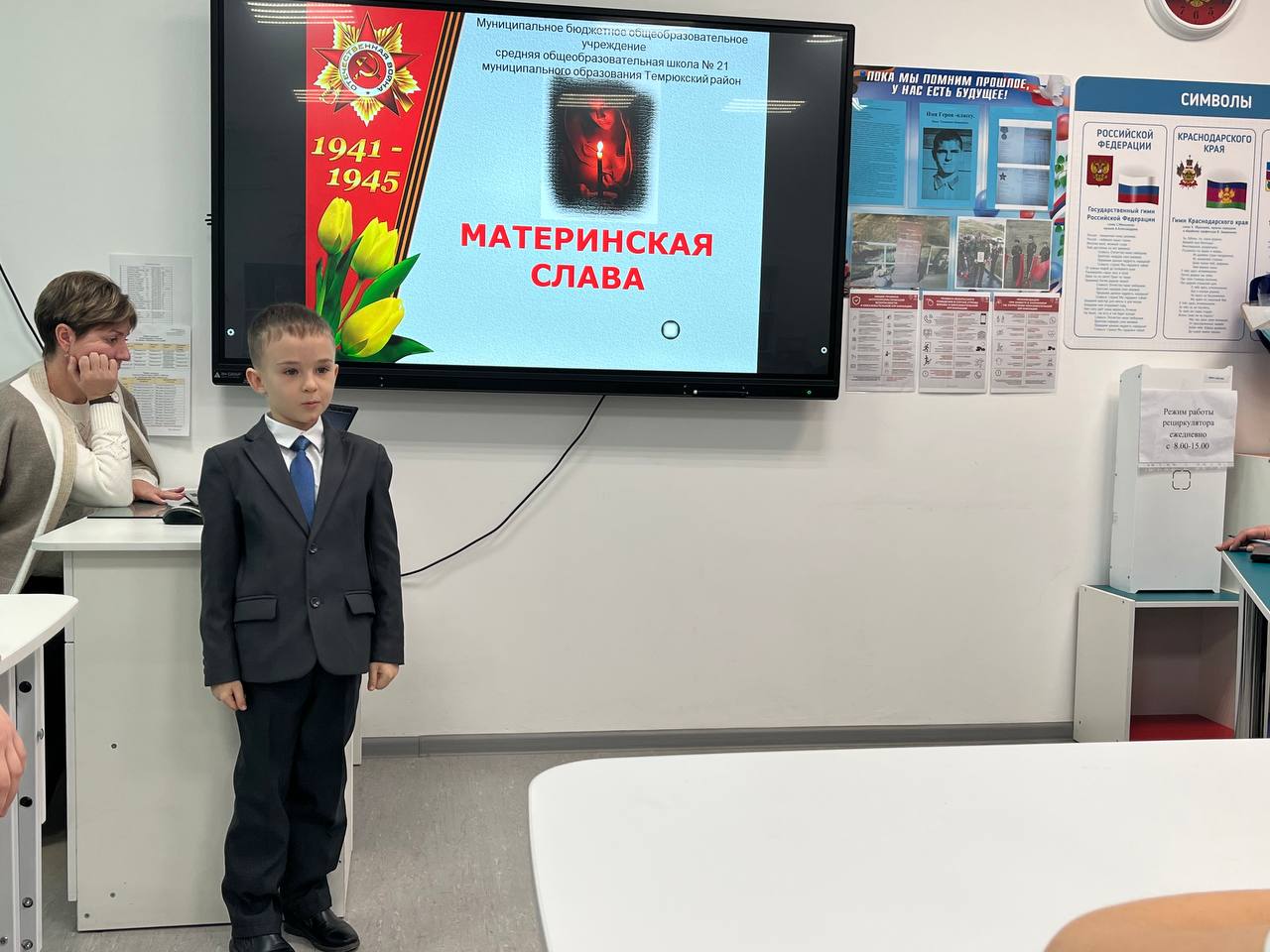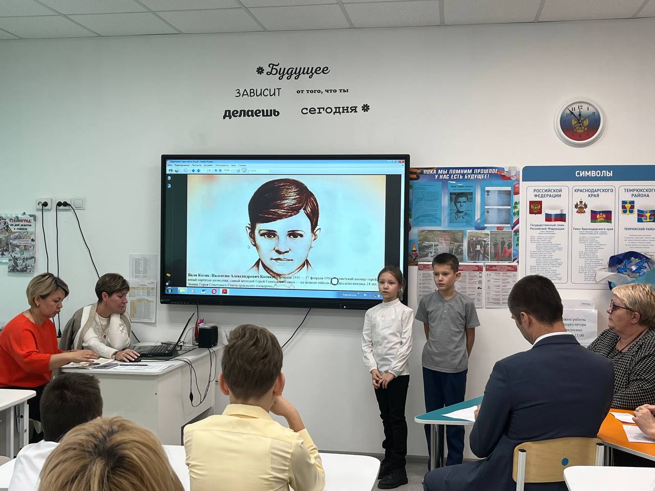 В рамках проекта "Историческая память" в МБОУ СОШ № 21 ст. Голубицкой прошёл школьный этап конкурса «Наша школа носит имя героя», в ходе которого обучающиеся представляли проекты «Мой класс носит имя героя». Учащиеся каждого класса изучили и подготовили материалы о героях – это и герои Великой Отечественной войны, Чеченской войны, герои России. Всё мероприятие было пронизано патриотизмом и уважением к Героям Отечества. В мероприятии принял участие заместитель председателя Совета молодых депутатов Максим Калиниченко.