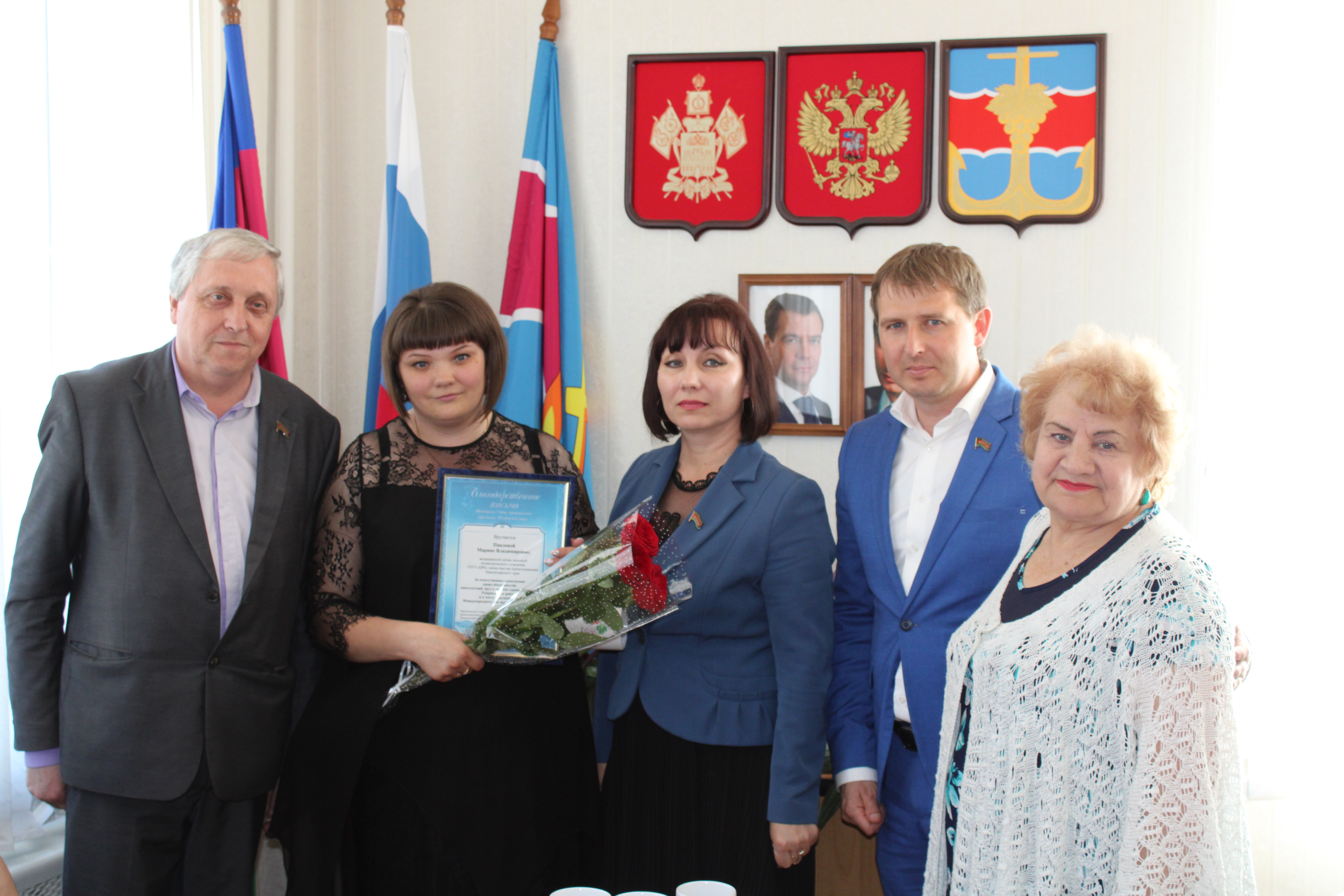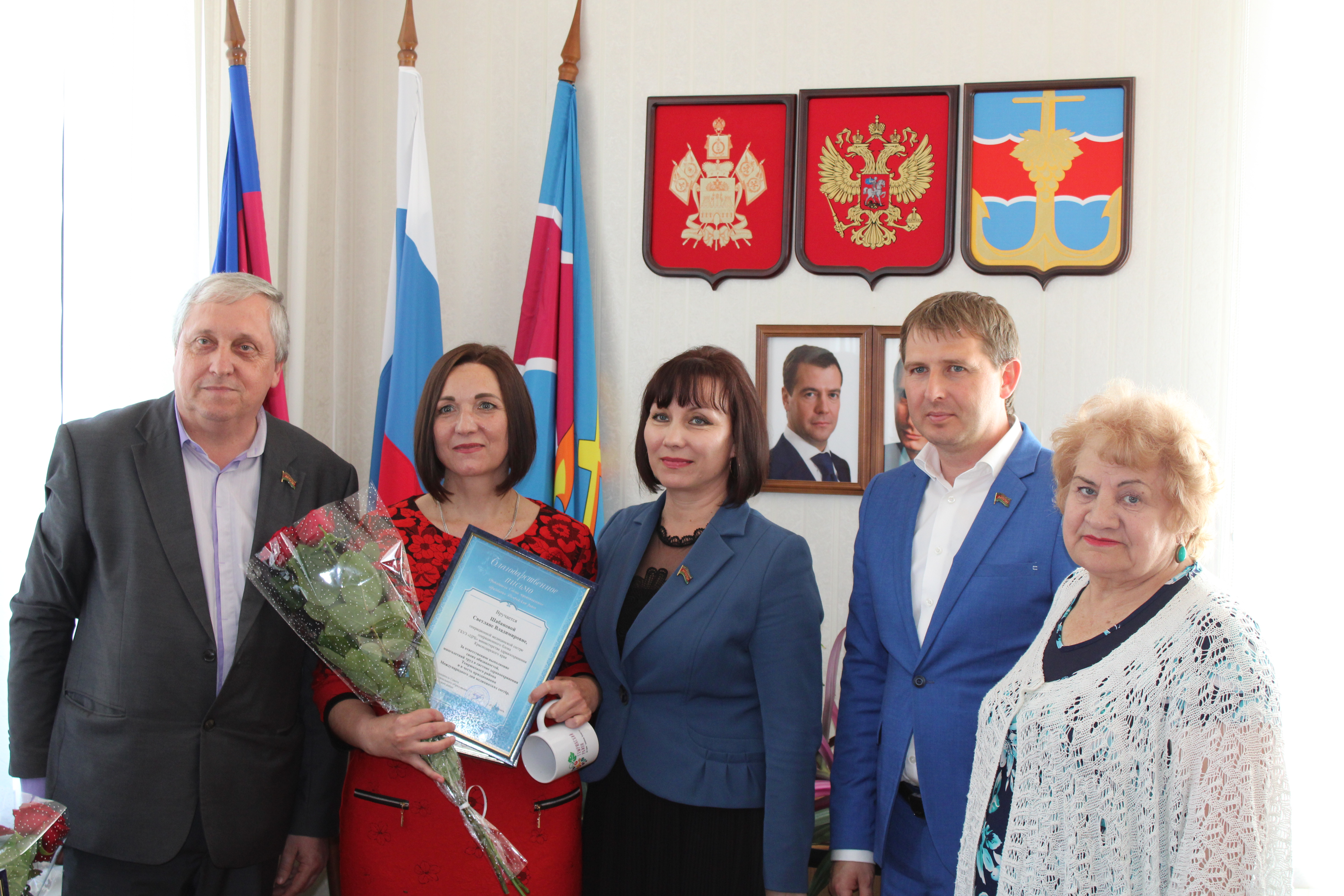 Виновницам торжества были вручены благодарственные письма председателя Совета, памятные подарки и цветы; памятный подарок получила исполняющая обязанности главной медсестры Наталья Ягло. В завершение мероприятия было сделано традиционное фото на память.