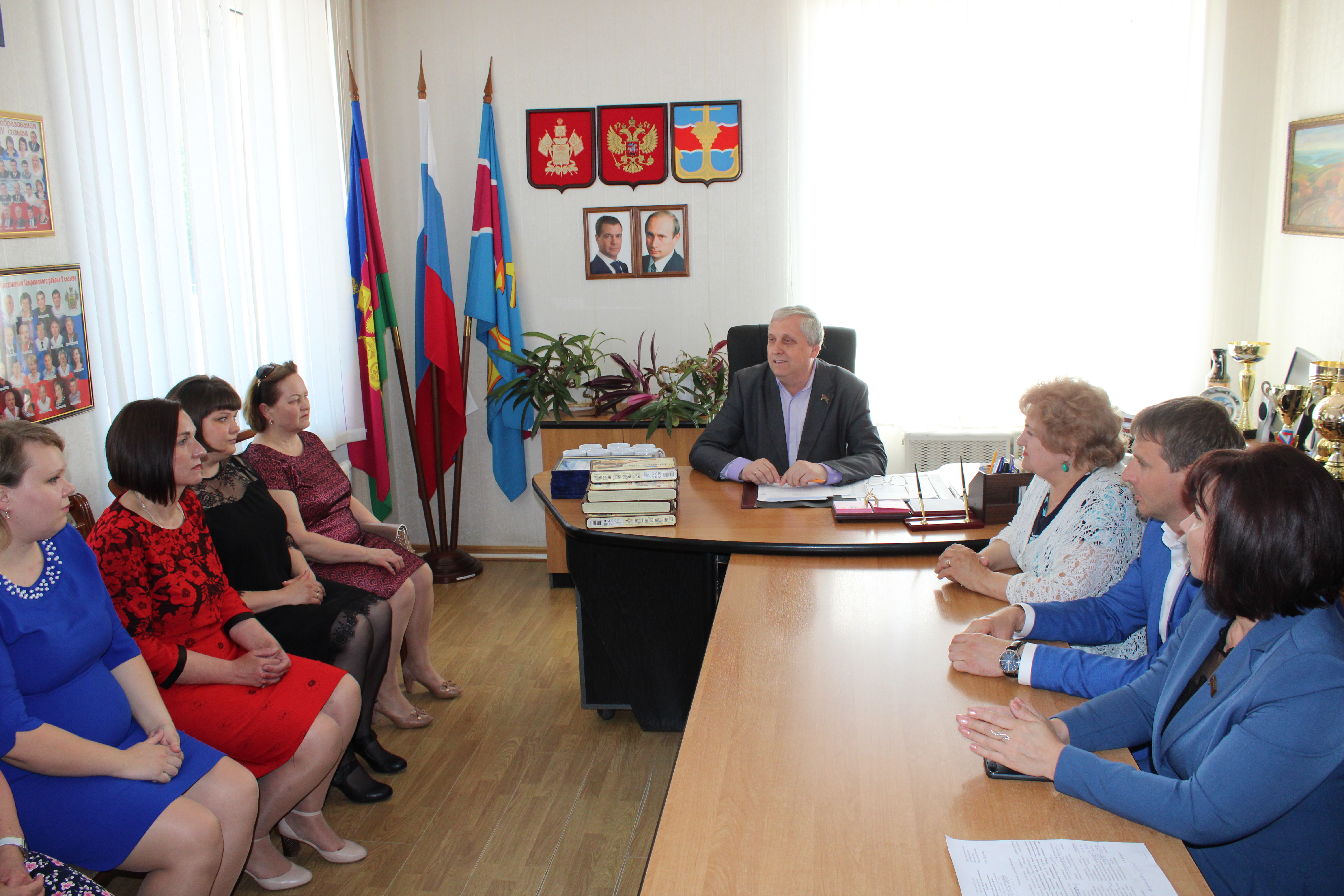 В Совете муниципального образования Темрюкский район состоялся традиционный ежегодный прием медицинских сестер, приуроченный к Международному дню медсестер. На встречу с председателем Совета Александром Шерстневым, помощником депутата ЗСК Ирины Конограевой, председателем постоянной депутатской комиссии по вопросам социальной защиты населения, здравоохранения, образования, культуры, спорта и делам молодежи Светланой Чмулевой, председателем Совета молодых депутатов Евгением Жулай и заместителем председателя районного Совета ветеранов Валентиной Садовской пришли медицинские сестры, которые трудятся в различных отделениях ЦБР. У каждой своя история, как и почему выбрала профессию, которую принято считать призванием.