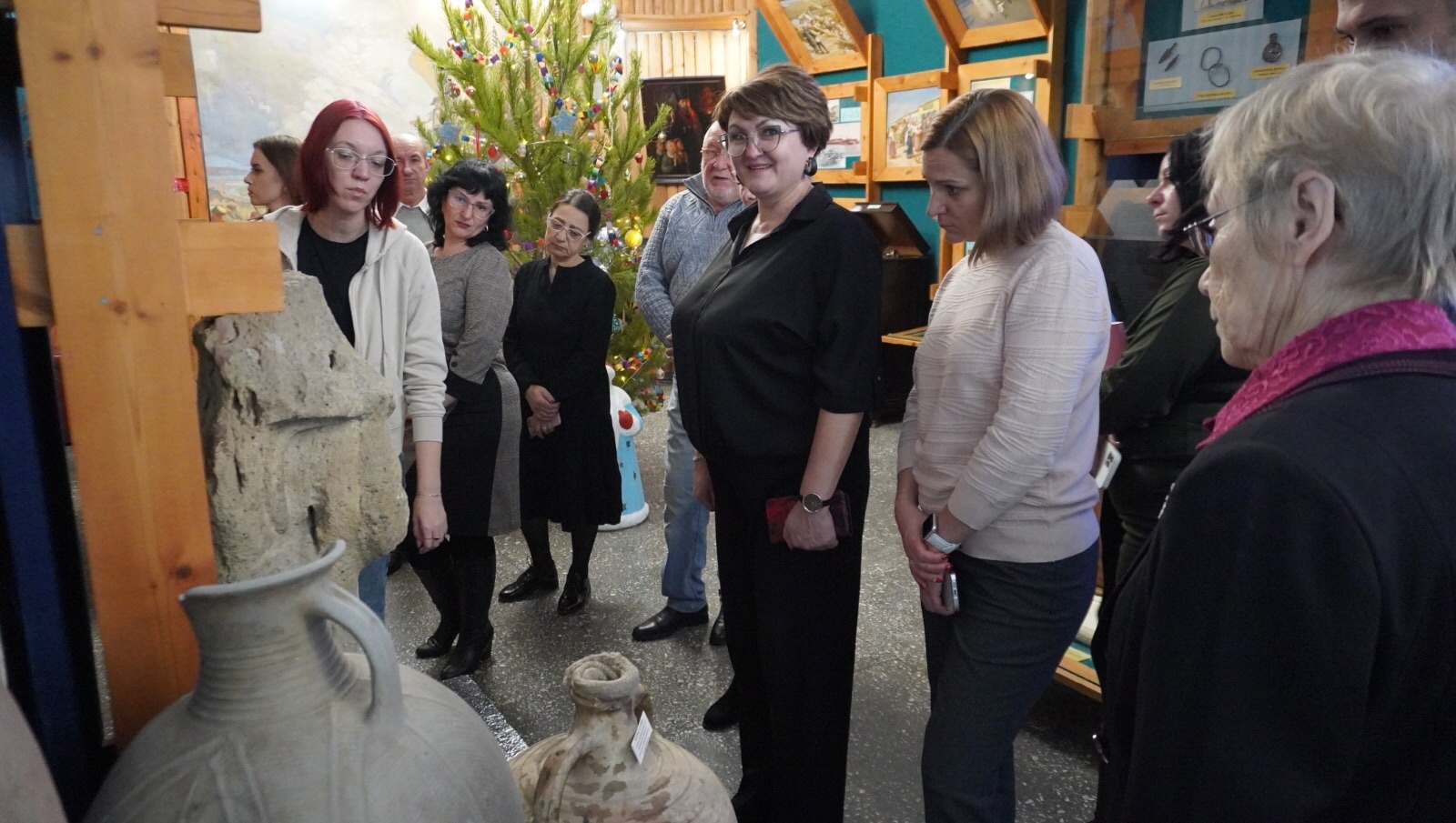 В Темрюкском историко-археологическом музее для руководителей школьных музеев научным сотрудником Латышевой Юлией и заведующим отделом научно-просветительской работы Головко Григорием была проведена обзорная экскурсия по залам музея.