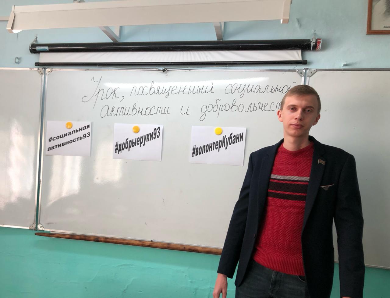 Молодой депутат Старотитаровского сельского поселения Павел Христиченко провёл для учащихся средней школы № 18 урок добровольчества.