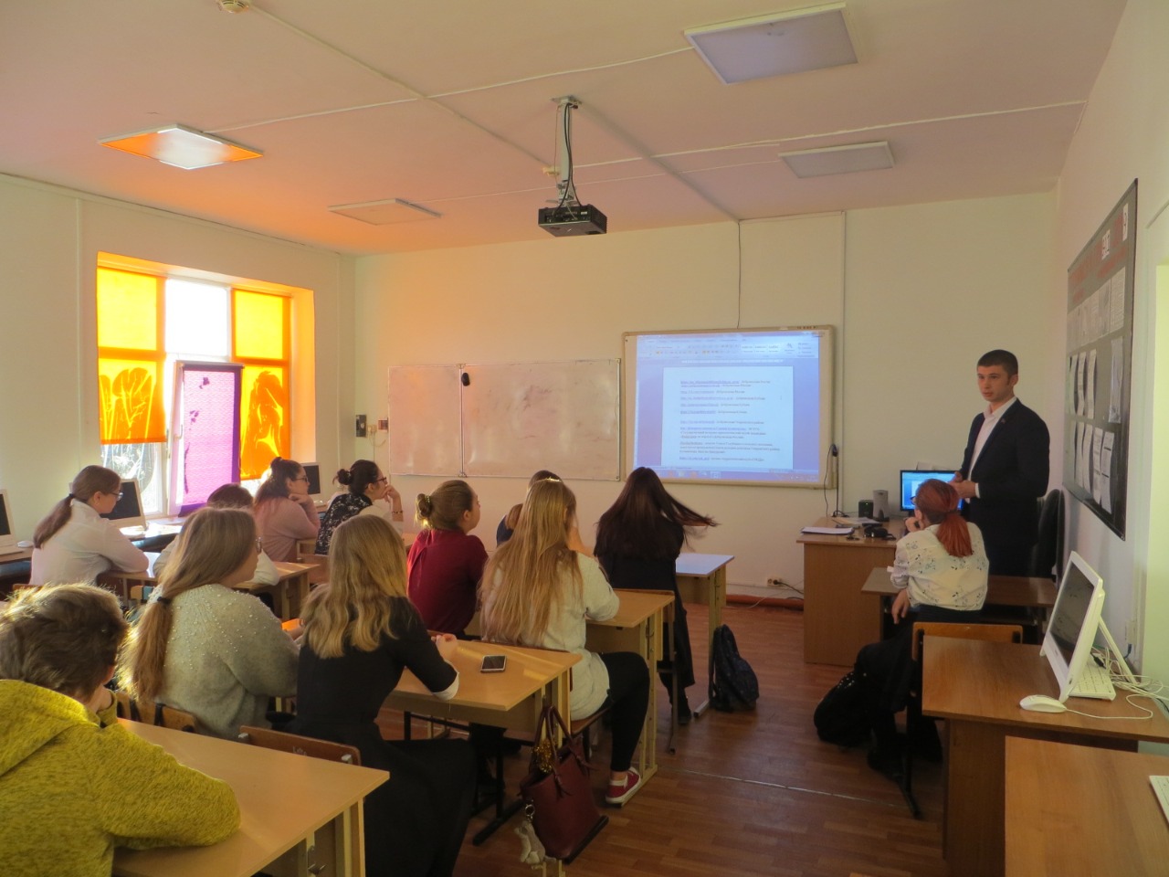 Вместе с учениками посмотрели фрагменты фильма «Волонтеры будущего». Проинформировал ребят об информационном портале «Добровольцы России».