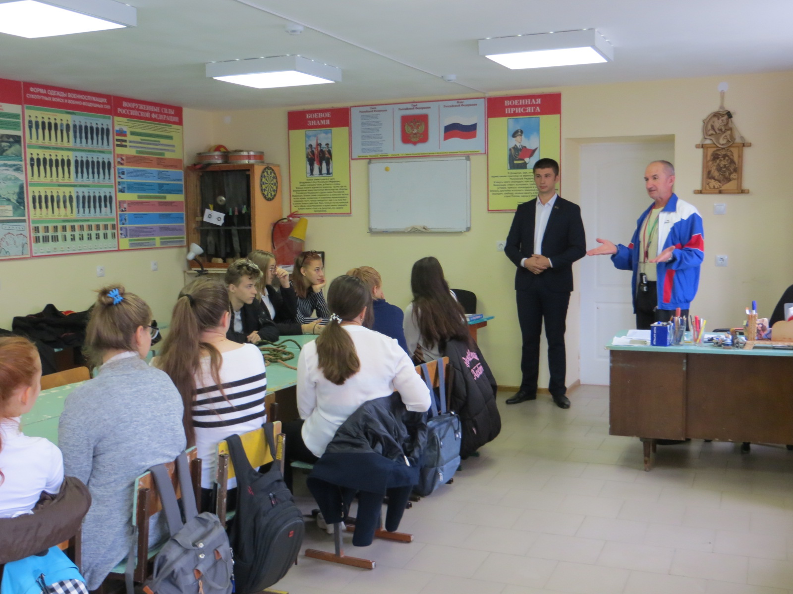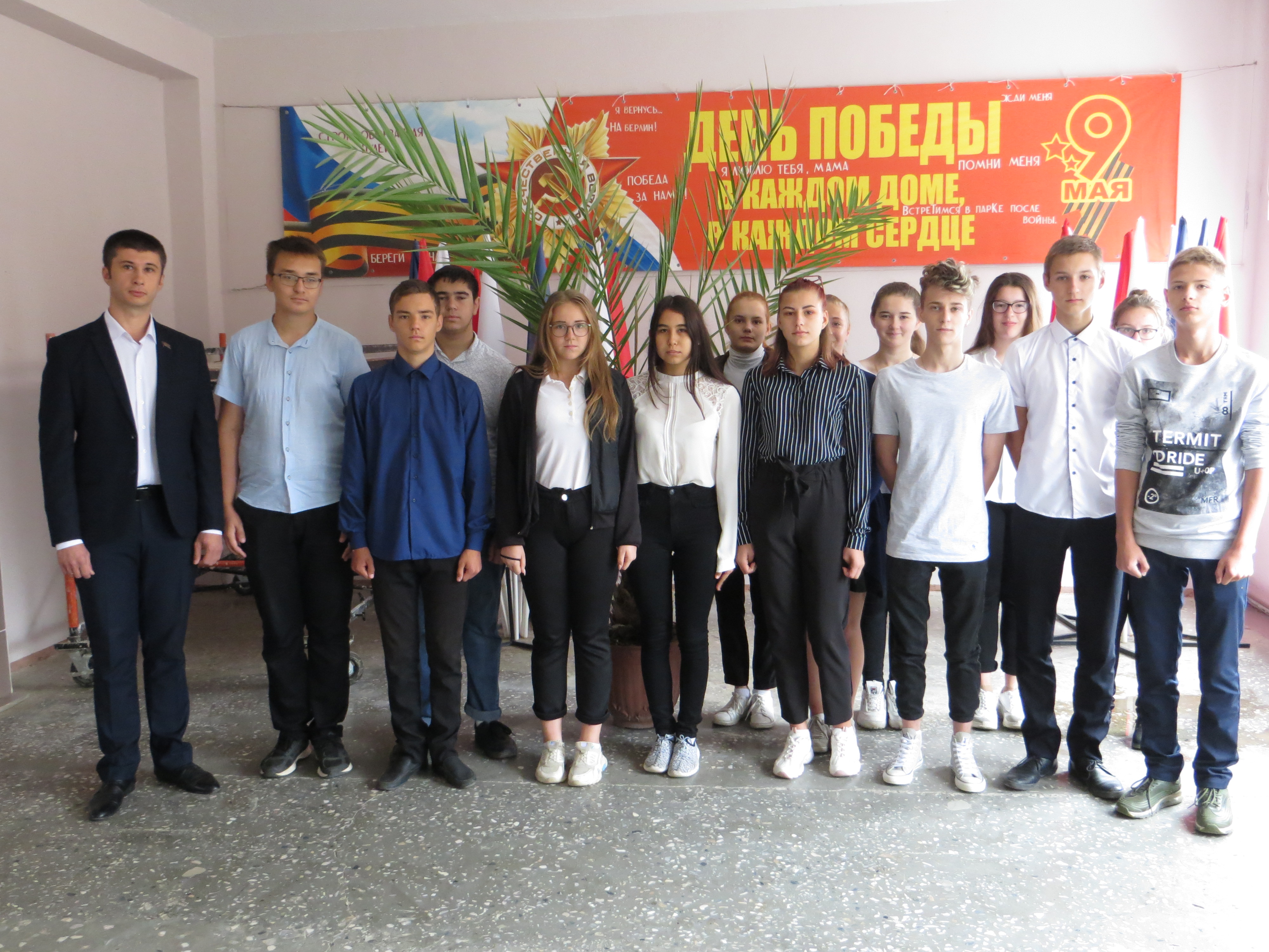 В рамках проведения праздничных мероприятий, посвященных 76-й годовщине освобождения г. Темрюк от немецко-фашистских захватчиков, для учащихся 9-х классов школы № 21 ст. Голубицкой, заместитель председателя Совета молодых депутатов Темрюкского района Максим Калиниченко, совместно с учителем ОБЖ Назаренко Владимиром Григорьевичем, провели Урок мужества.