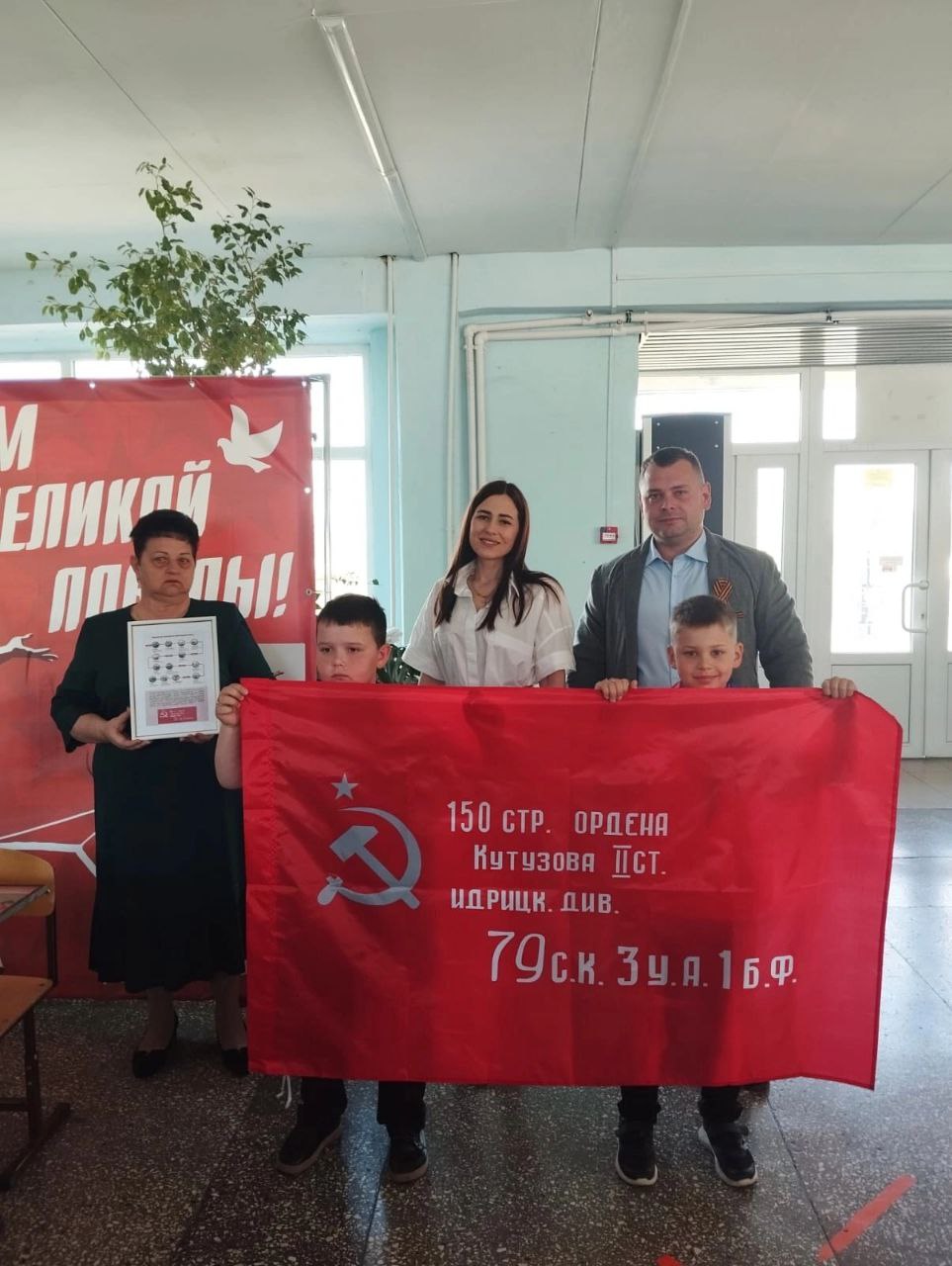 К 80-летию победы гости подарили школе Знамя Победы.