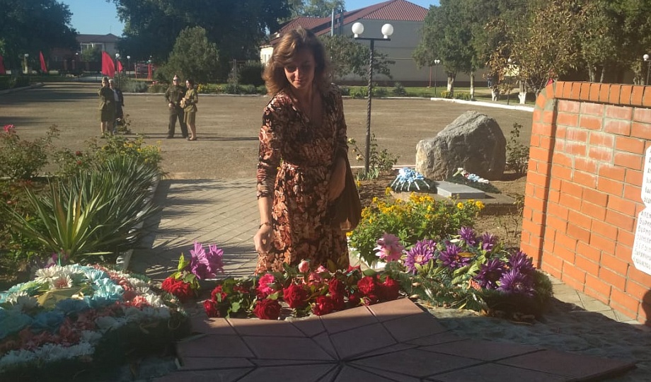 Молодой депутат Фонталовского сельского поселения Вера Жданова приняла участие в возложении венков к мемориалу воинской славы в поселке Кучугуры в честь освобождения поселка от немецко-фашистских захватчиков.