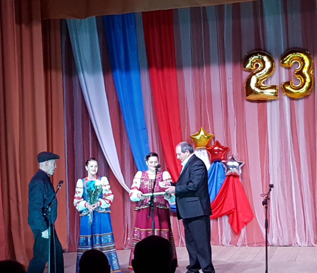 "Я честью этой дорожу!"- под таким названием прошёл праздничный концерт, посвященный Дню Защитника Отечества в сельском Доме культуры хутора Белый 23 февраля 2020 года, на котором была вручена памятная медаль 75-летия Великой Победы малолетнему узнику концлагерей Вигеборич Виктору Ивановичу. В праздничном концерте приняла участие молодой депутат Краснострельского сельского поселения Яна Косолапова.