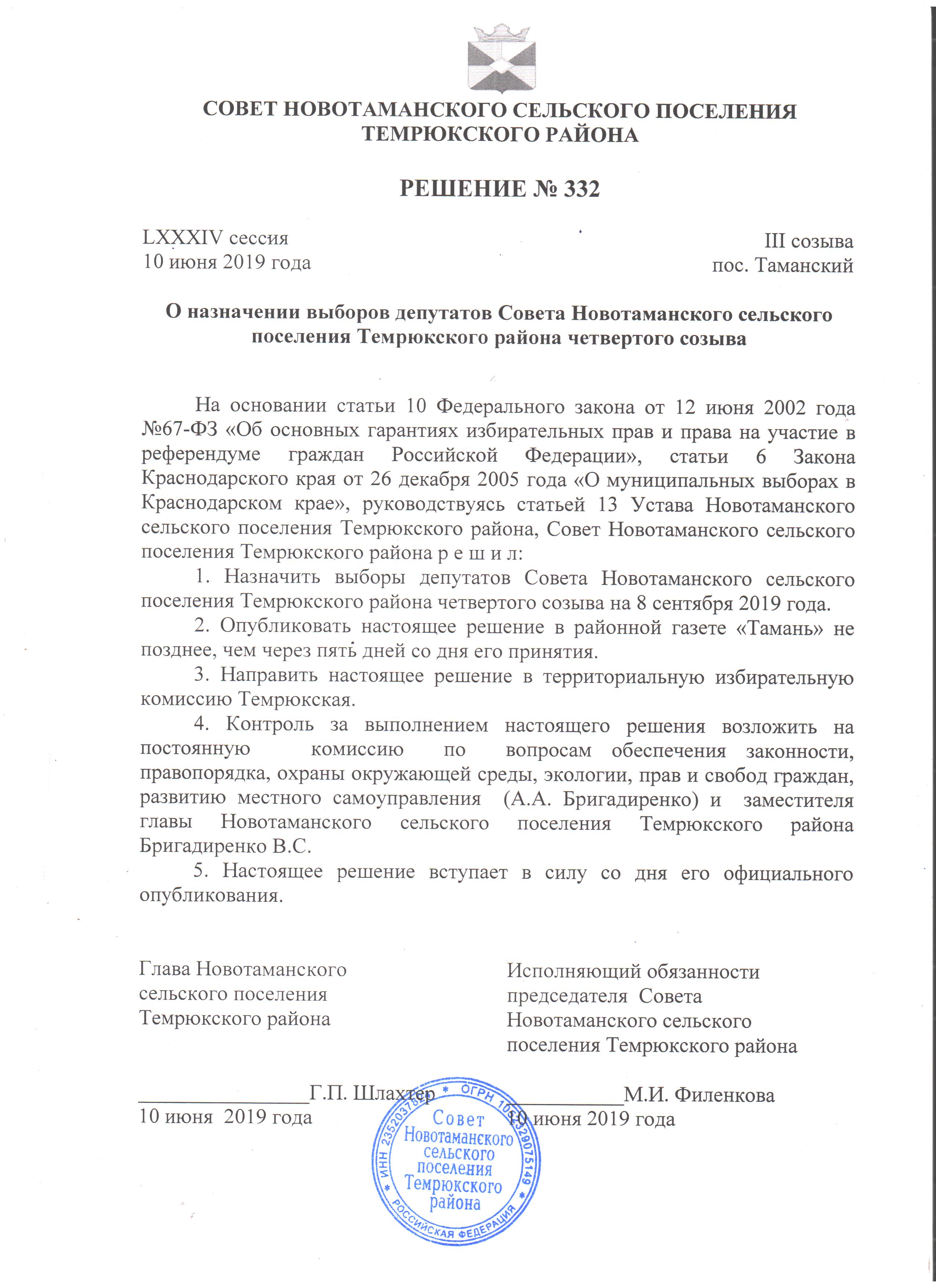 О назначении выборов депутатов Совета Новотаманского сельского поселения Темрюкского района четвертого созыва
