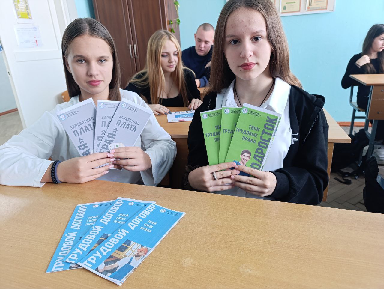 В рамках реализации плана мероприятий по проведению недели правовой грамотности по вопросам трудовых отношений «Краснодарский край – территория без тени» в старших классах школ № 6,10,11,18,23,24,31 в период с 28 октября по 1 ноября 2024 г. проведены «Часы трудовой безопасности». Педагоги рассказали учащимся об основных понятиях трудового законодательства в части вопросов трудоустройства, оформления трудовых отношений в том числе несовершеннолетних, о негативных последствиях неоформления трудовых отношений для работника, о безопасности труда и трудовых правах. Школьникам демонстрировались социальные видеоролики, предоставлены наглядные материалы и памятки.