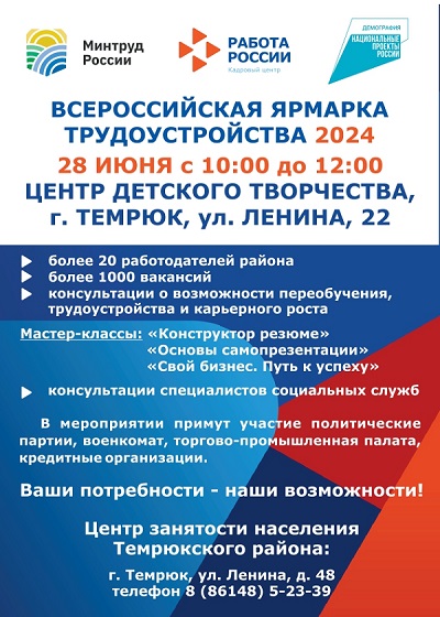Телефон «Горячей линии» администрации муниципального образования Темрюкский район: 8(86148)5-17 Телефон «Горячей линии» ГКУ КК «Центр занятости населения Темрюкского района»: 8(86148)5-47-17