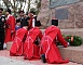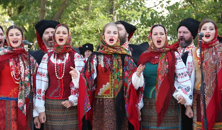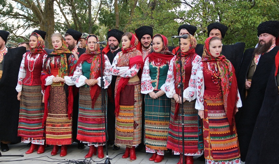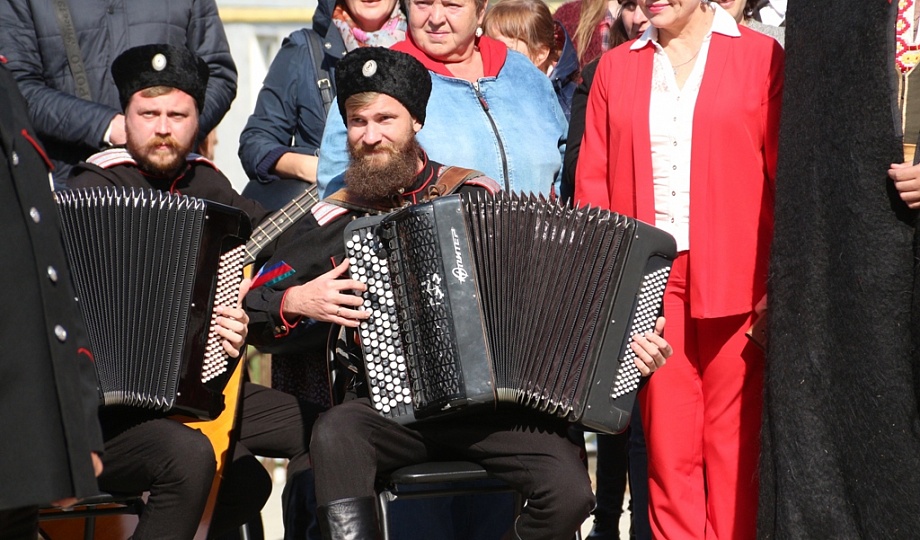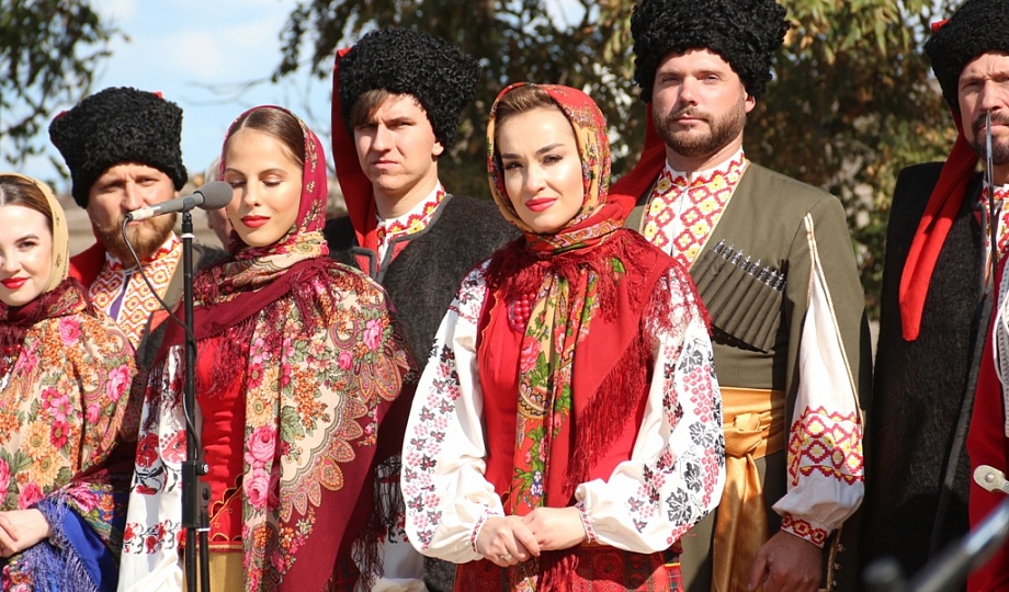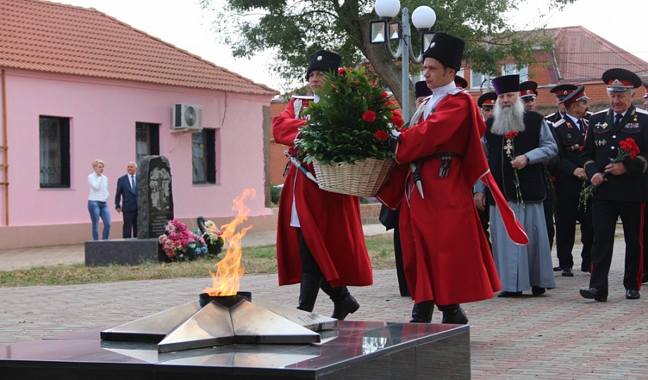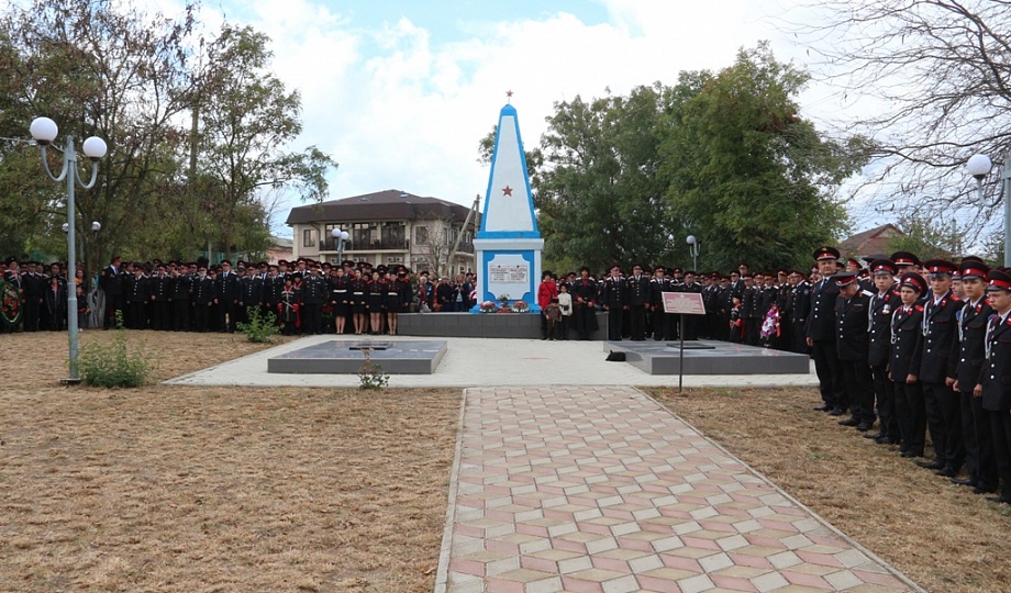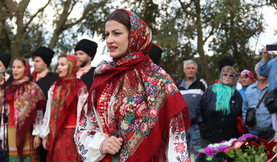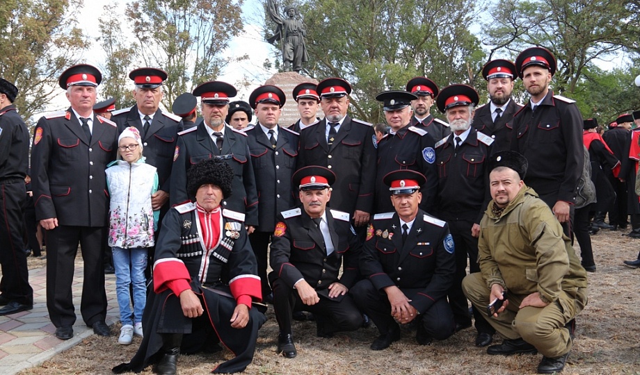 К памятнику казакам-переселенцам собравшиеся возложили гирлянду, венки и цветы. Для гостей праздника солисты Кубанского казачьего хора исполнили казачьи песни.