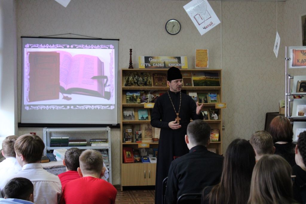 О наиболее читаемой и самой издаваемой книге в мире - Библии поведал школьникам отец Виталий – настоятель храма Святого Благоверного князя Александра Невского г. Темрюка.