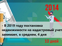 За последние пять лет средний срок постановки на государственный кадастровый учет снизился с десяти до четырех дней. Это стало возможным благодаря внедрению электронных сервисов и развитию различных форм межведомственного взаимодействия.