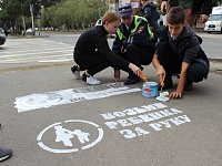 В рамках социальной кампании «Однозначно» госавтоинспекторы Темрюкского района Станислав Кузнецов и Александр Войтех вместе с учениками первой, третьей и тринадцатой школ нанесли профилактические надписи с помощью трафаретов.