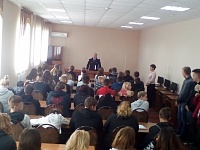В пос. Веселовка для студентов филиала Славянского сельскохозяйственного техникума состоялся классный час, который провел начальник штаба Новотаманского хуторского казачьего общества младший урядник Сергей Бригадиренко.