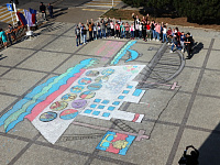 Сегодня в рамках празднования 95-летия Темрюкского района прошел традиционный интерактивный конкурс рисунков на асфальте «Люблю и рисую тебя, мой район».