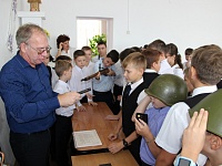 На этот раз сотрудники Темрюкского историко-археологического музея рассказали ребятам не только о важных датах хронологии Второй мировой войны, но и привезли с собой целую коллекцию предметов военного быта, воинское снаряжение, а также точные копии винтовки Мосина и пистолета ТТ.