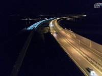 На Крымском мосту протестировали систему освещения железной дороги. На километровом пилотном участке, ближе к таманскому берегу, на три часа включили почти 150 светильников. Они расположены на стойках с шагом от 13 до 16 м. Степень освещенности путей в темное время суток проверили на соответствие проектным расчетам.