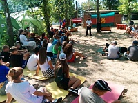В преддверии закрытия палаточного лагеря «Кадет -2019» в п. Ильиче Атаман Темрюкского районного казачьего общества подхорунжий Виталий Хандошка встретился с учениками казачьих классов и провёл с казачатами беседу, в ходе которой рассказал о современном казачестве, о том чем казаки занимаются на данный момент, как работает и служит Кубанское казачье войско, какие результаты уже достигнуты и что планируется на будущее. Затронул атаман и тему работы "Союза Казачьей Молодёжи Кубани" и что ребята могут предлагать свои идеи и тем самым развивать территории своего региона.