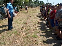 В поселке Ильич казаки станицы Голубицкой провели тренировку по военной подготовке с использованием тренировочного комплекта "Лазертаг" для казачат в детском казачьем лагере "Кадет".