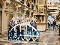 Экспозиция длиной более 60 метров выстроена на третьей линии ГУМа. Она разделена на восемь тематических зон, где можно увидеть Крымский мост с высоты башенного крана, пройти на импровизированном корабле по Керченскому проливу, ознакомиться со всеми этапами и технологиями стройки века.