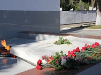 В Темрюкском городском поселении состоялась торжественная церемония возложения цветов и венков к Вечному огню на Воинском мемориале.