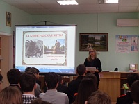 2 февраля - День воинской славы России, день разгрома советской армией немецко-фашистских войск в Сталинградской битве. К этой дате в центральной городской детской библиотеке им. О. Кошевого была оформлена книжная выставка «Имя тебе – победитель», а так же, проведен исторический хронограф для учащихся 8 класса школы № 14 «Был тот февраль прологом мая».
