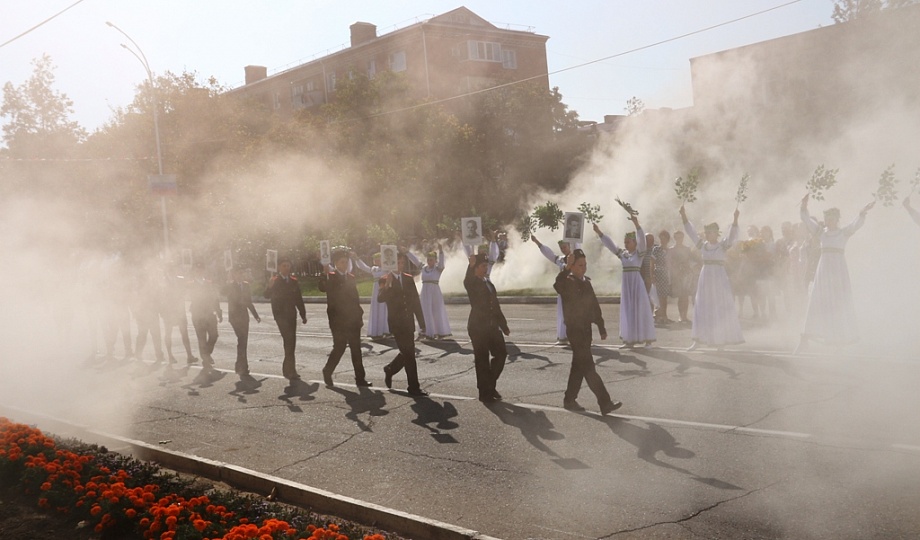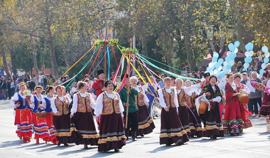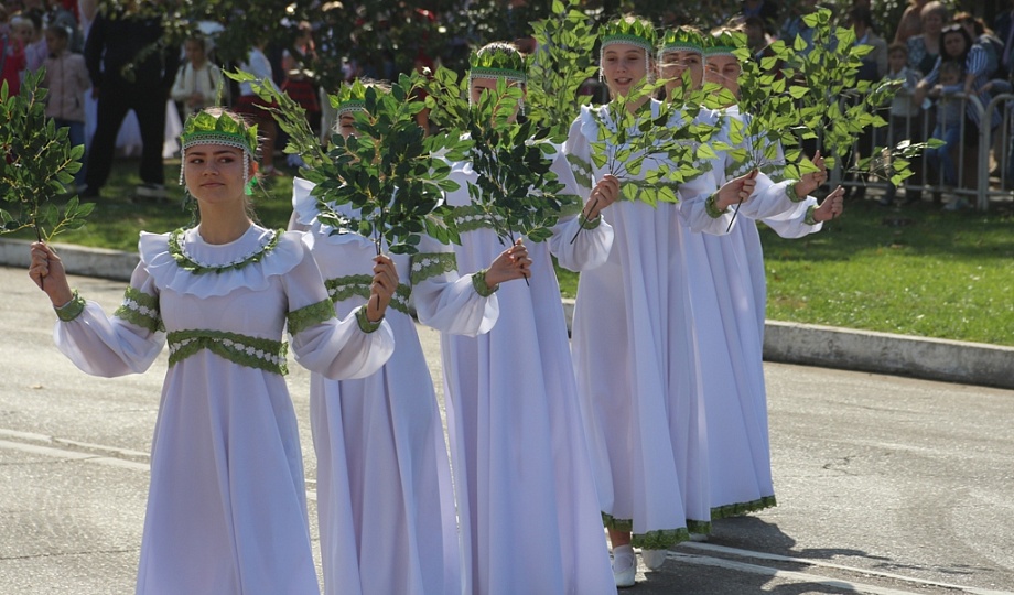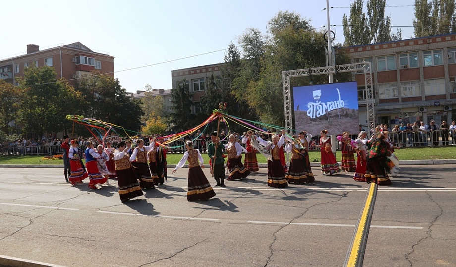 Праздничное шествие по центральной улице города продолжили артисты, представившие подворье казачьей станицы "Атамань". В этом году этнографическому комплексу исполнилось 10 лет.