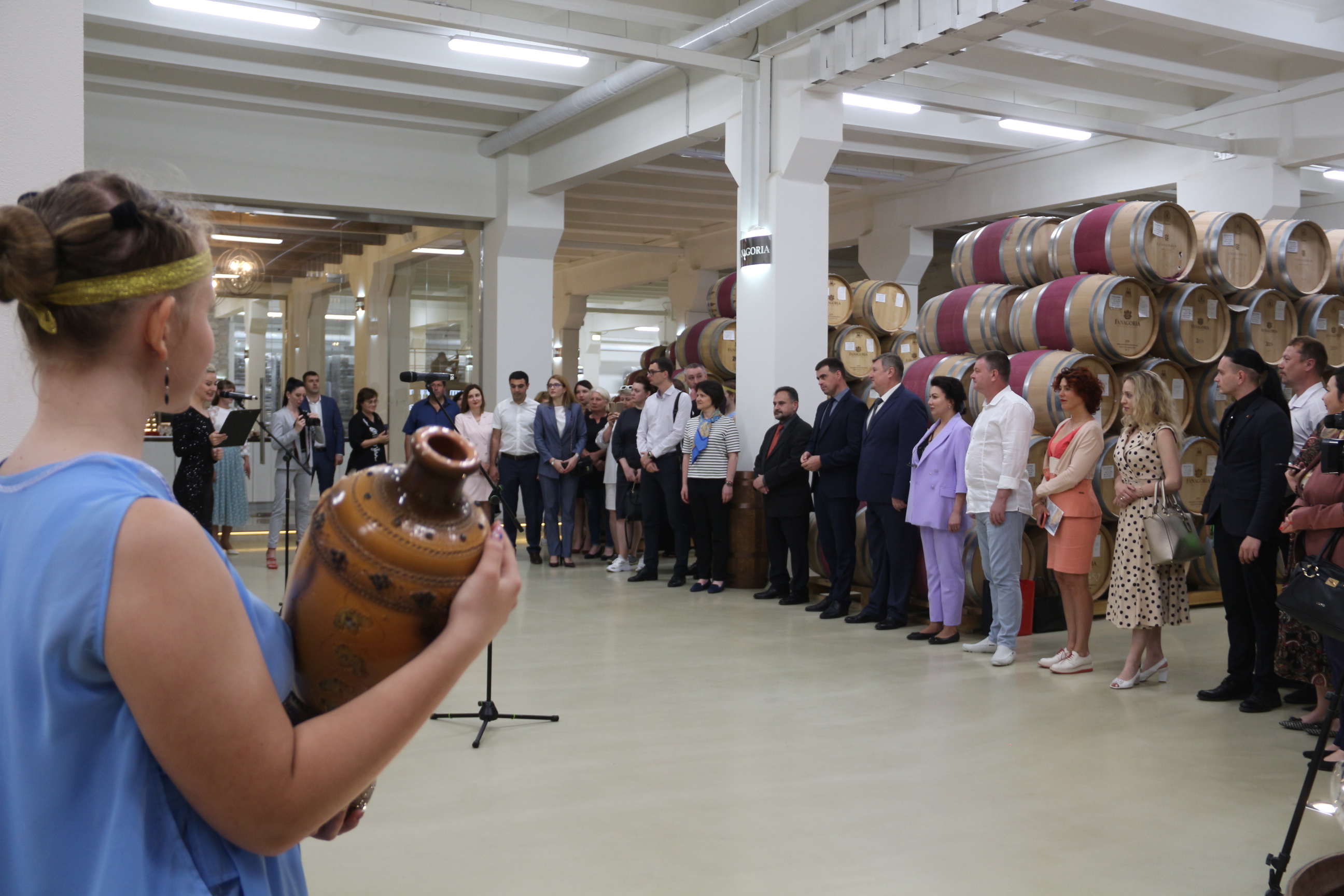 Гостям центра были показаны основные этапы виноделия – процесс приемки, дробления и прессования винограда, изучение цеха брожения, посещение винохранилища для выдержки вин и многое другое. В зале для профессиональных дегустаций были представлены лучшие наименования вин, выпускаемых предприятием.
