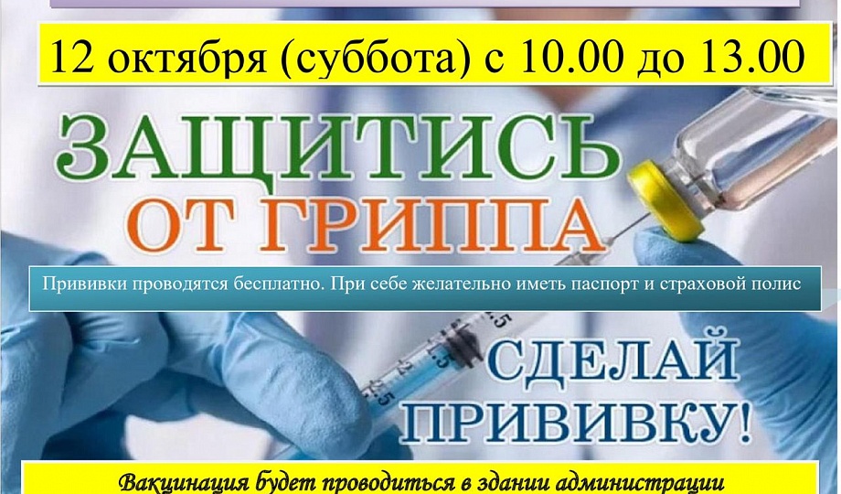 В субботу 12 октября 2019 года в здании администрации центрального рынка города Темрюка с 10:00 до 13:00 будет проводиться вакцинация против гриппа.