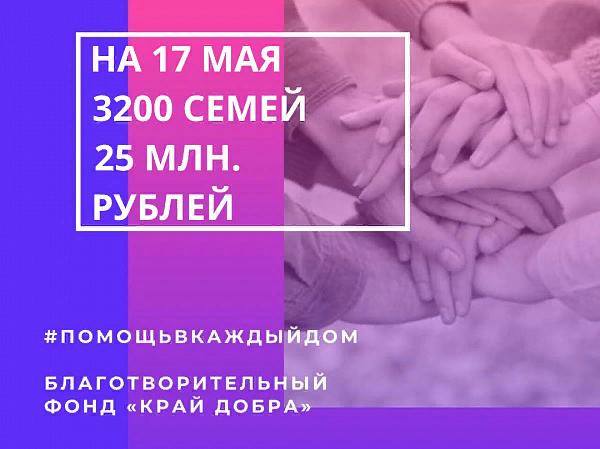 Совместно с Общественной Палатой региона фонд с апреля реализует благотворительную программу «Пандемия 2020». За месяц работы помощь получили около 3200 семей на сумму свыше 25 млн рублей. Это малообеспеченные семьи, а также семьи с детьми-инвалидами.