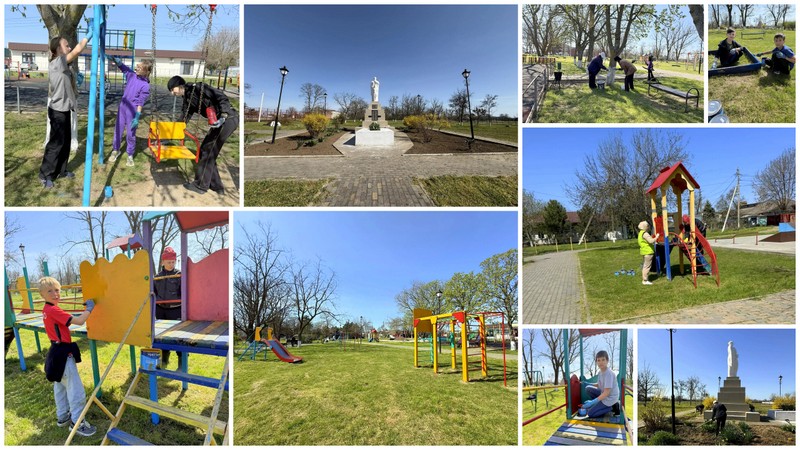 В парке посёлка Ильич Запородского сельского поселения провели субботник. К организаторам присоединились юные жители посёлка. Ребята помогали красить игровое оборудование на детской площадке.