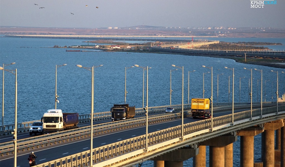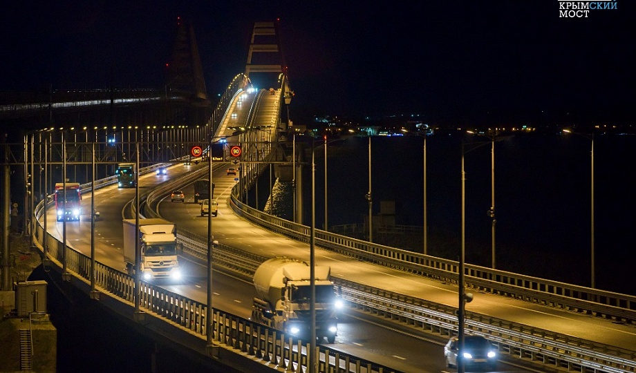 Грузопоток в направлении Крыма примерно на 4 % превысил краснодарский и составил почти 377 тысяч машин. Наибольшая месячная интенсивность движения грузовиков по мосту в обе стороны зафиксирована в июле текущего года: 73 103 автомобиля за месяц. Суточный рекорд пришелся на 26 сентября: 2 931 фура за 24 часа.