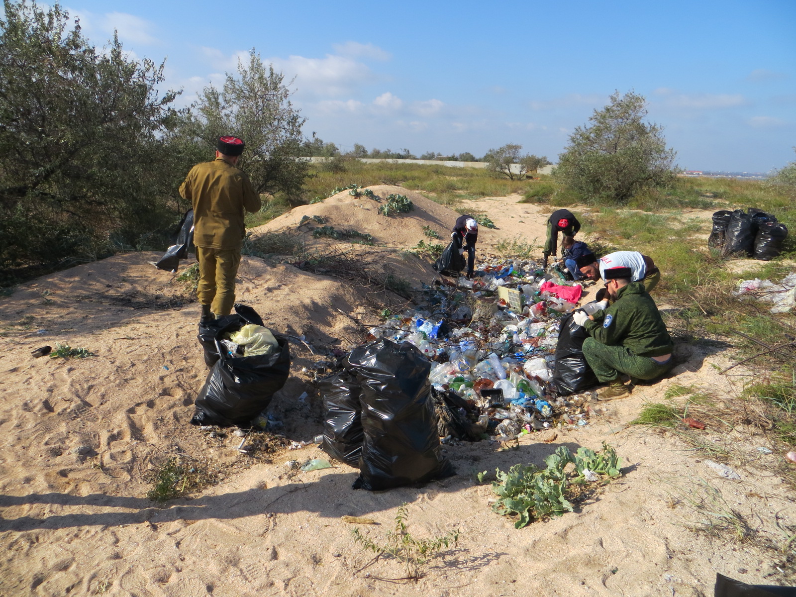 На берегу Азовского моря, неподалеку от порта Темрюк, в минувшие выходные прошла экологическая акция «Чистый берег». Среди участников мероприятия - казаки Голубицкого и Темрюкского куреней, члены военно-патриотического клуба «ГРИДЬ», сотрудники администрации Темрюкского городского поселения, добровольцы. Всего в акции приняли участие 20 человек.