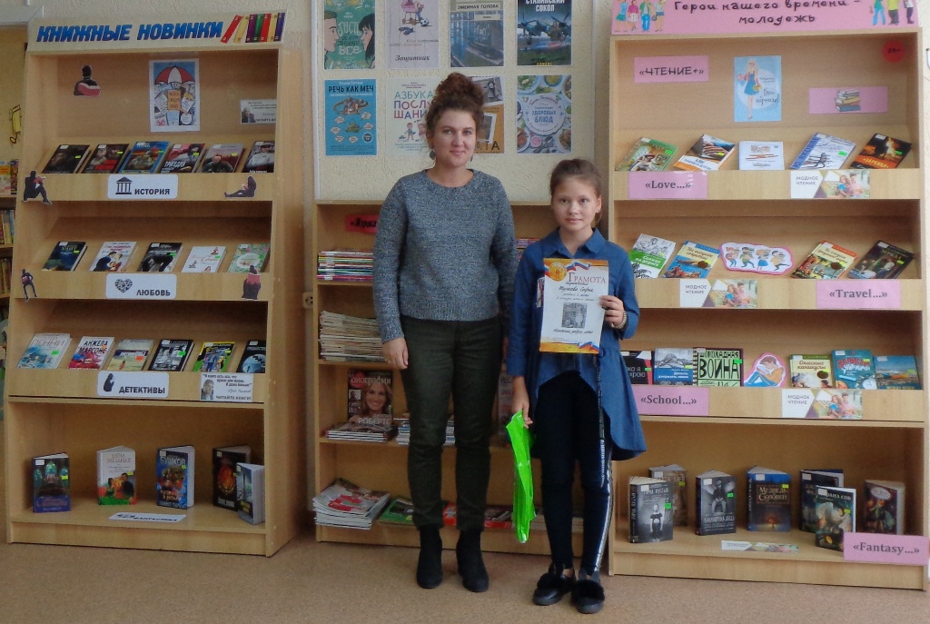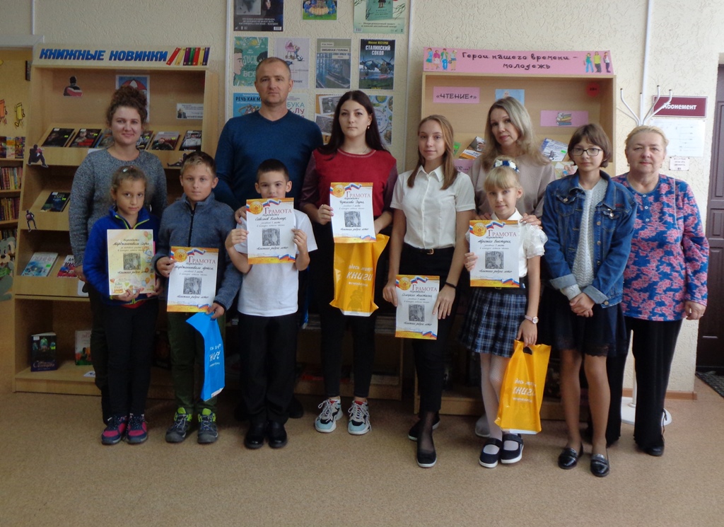 В городской библиотеке подвели итоги конкурса летнего чтения «Книжная радуга лета». В нем принимали участие читатели 1-11 классов. В каждой возрасной категории были выбраны по 3 победителя, прочитавших наибольшее количество книг. В возрастной категории 1-4 класс победителями стали: 1 место - Савельев Владимир, 2 место - Туякова София, 3 место - Авражко Виктория. В возрастной категории 5-8 класс победителями стали: 1 место - Таркин Радомир, 2 место - Колокова Маргарита, 3 место - Марджанишвили Артем. В возрастной категории 9-11 класс победителями стали: 1 место - Черкасова Дарья, 2 место - Захаров Виктор, 3 место - Селецкая Анастасия. За активное участие были награждены: Тесленко Павел, Кирсанова Дарья, Марджанишвили Софья, Терешко Кирилл, Пощев Евгений. Всем участникам подарены книги и почетные грамоты, сообщает заведующая городской библиотекой Л.Н. Баштовенко.