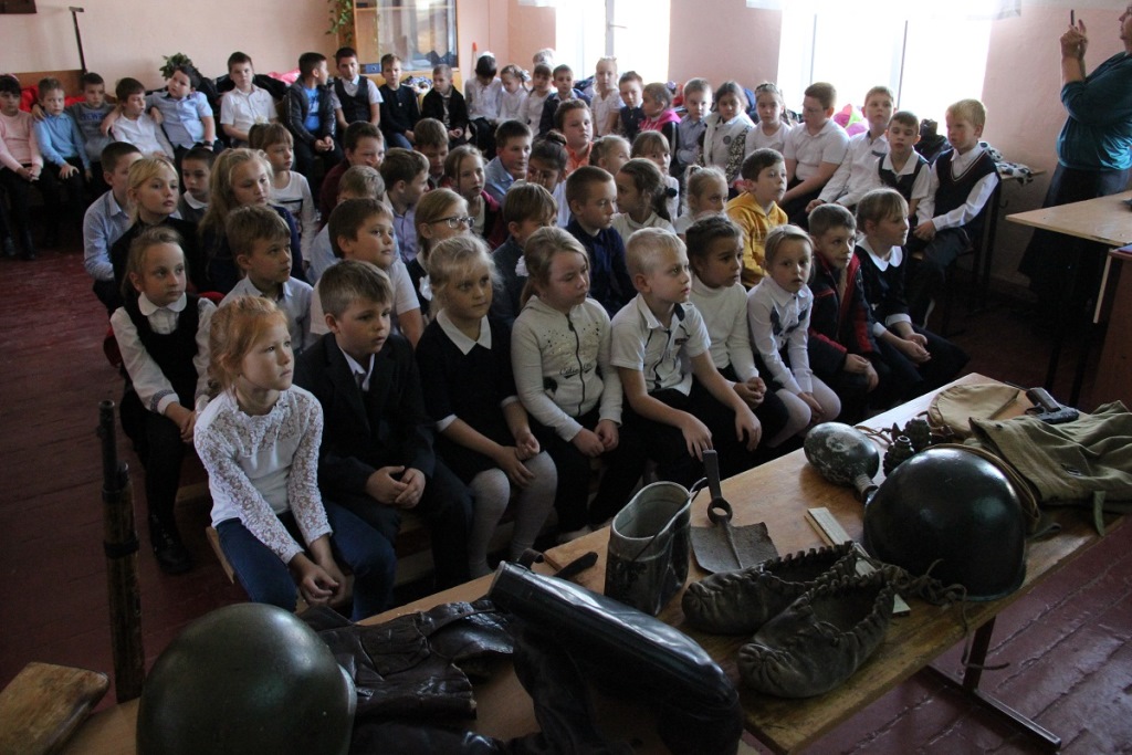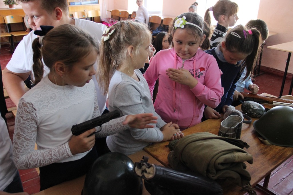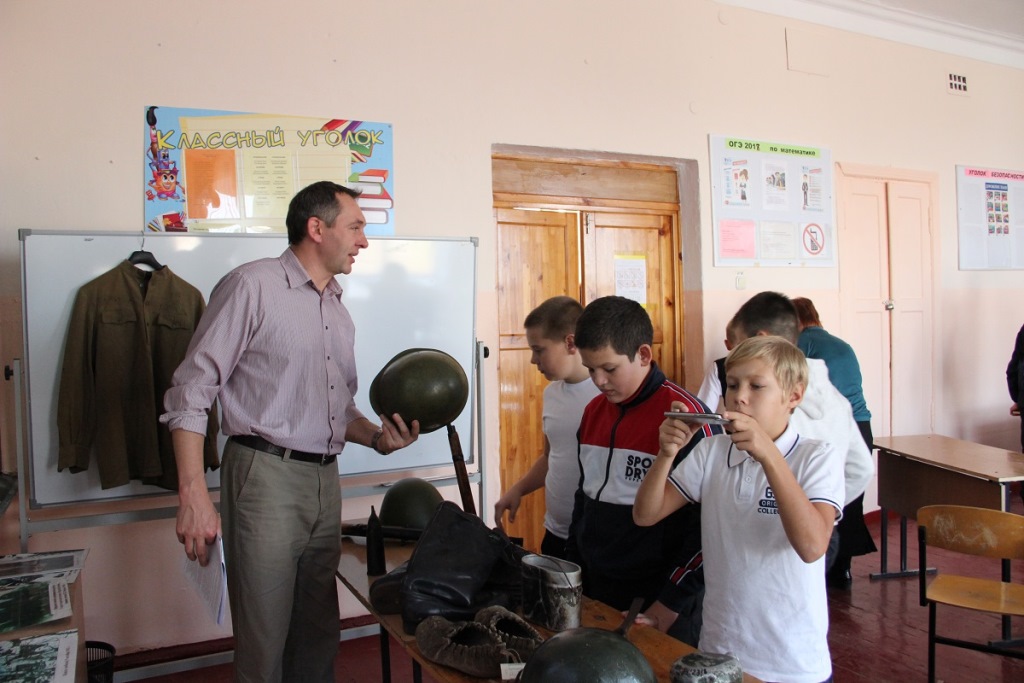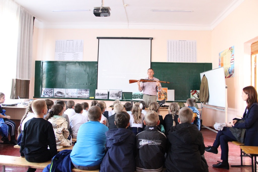 Сотрудники Темрюкского историко-археологического музея провели выездную встречу для учеников восьмой средней школы в поселке Сенном. Мероприятие прошло в рамках подготовки к празднованию 75-летия со Дня Великой Победы и посвящалось событиям Второй мировой войны на Тамани. В лекции участвовало более 120 учеников школы. Помимо рассказа, в сопровождении презентационного материала, музейщики привезли в школу набор предметов военного быта, а также муляжи оружия: винтовку Мосина, пистолет-пулемет Шпагина, пистолет ТТ. Особый интерес у ребят вызвало обмундирование и военная амуниция бойцов РККА, снарядные гильзы, приспособленные под ночные светильники, обувь из