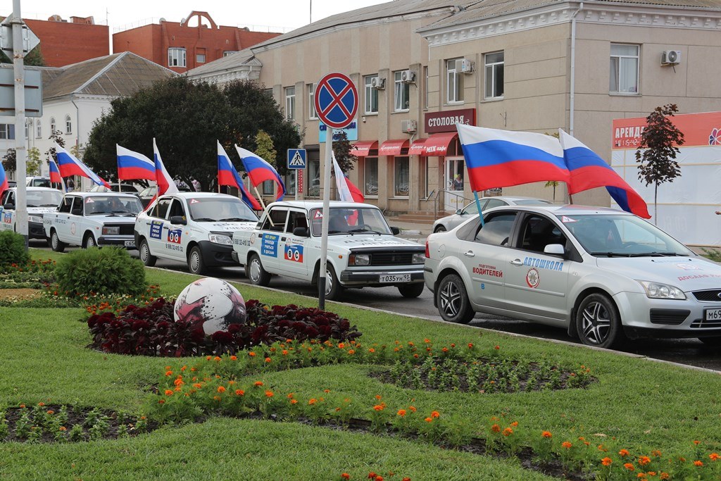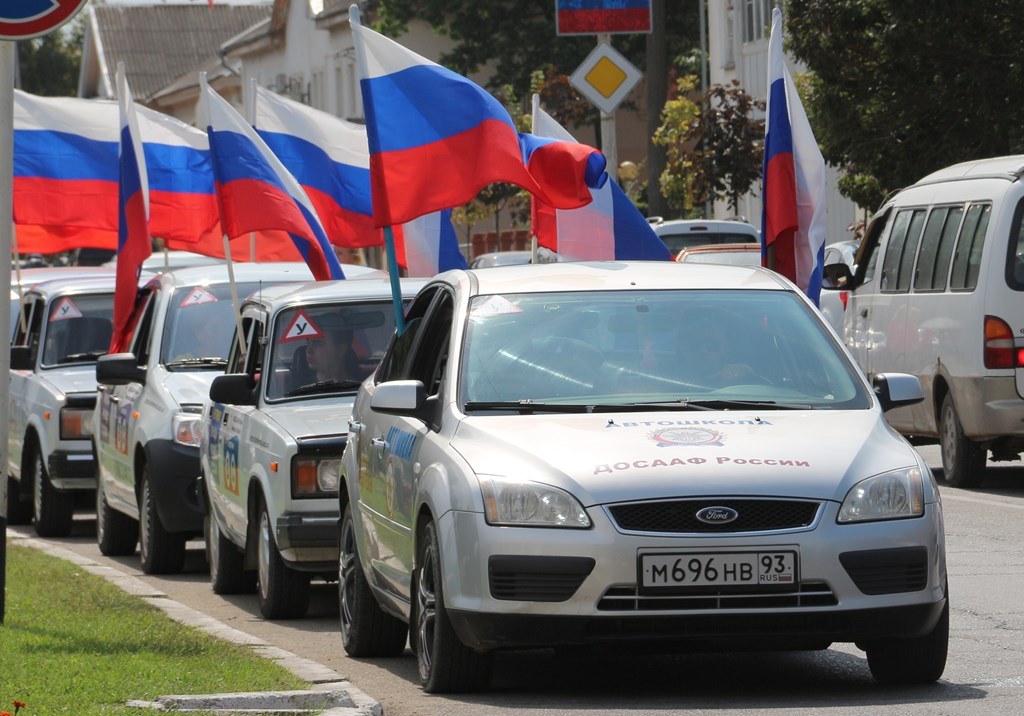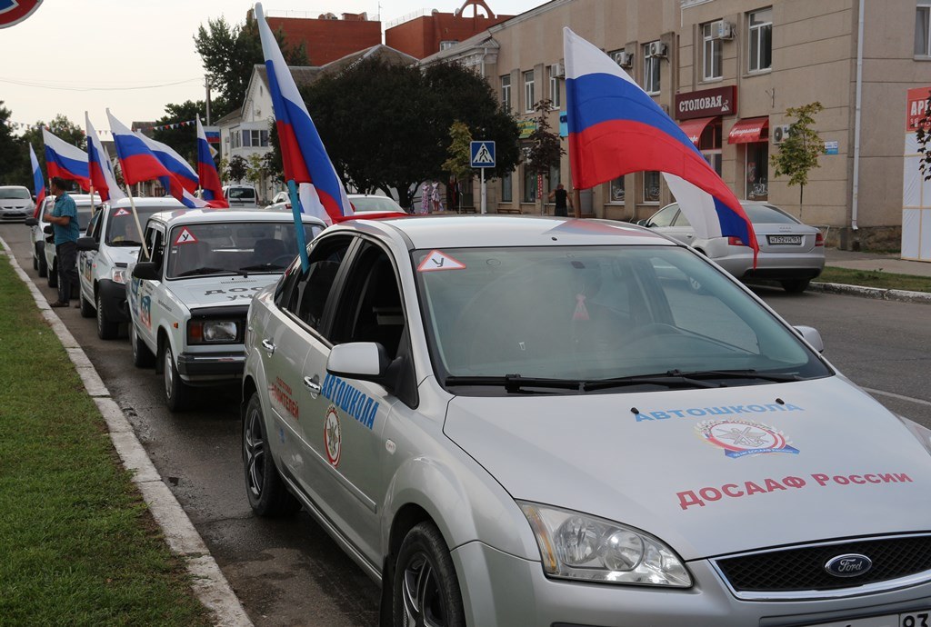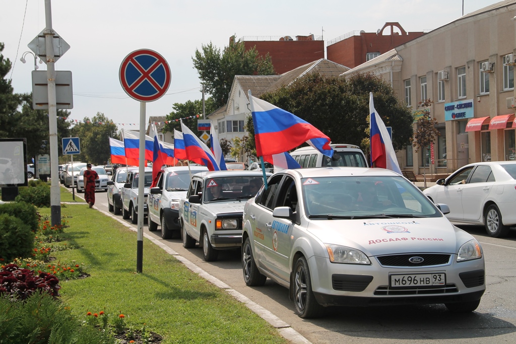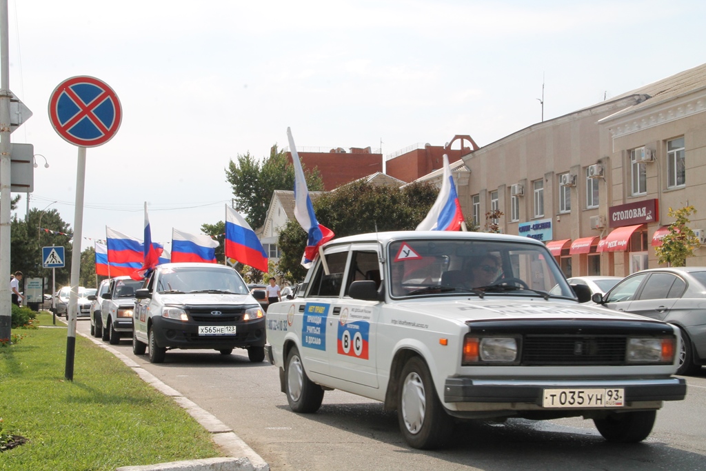 А после от площади Труда двинулась колонна автомобилей, украшенная флагами нашей страны, в рамках автопробега в честь Дня государственного флага Российской Федерации.