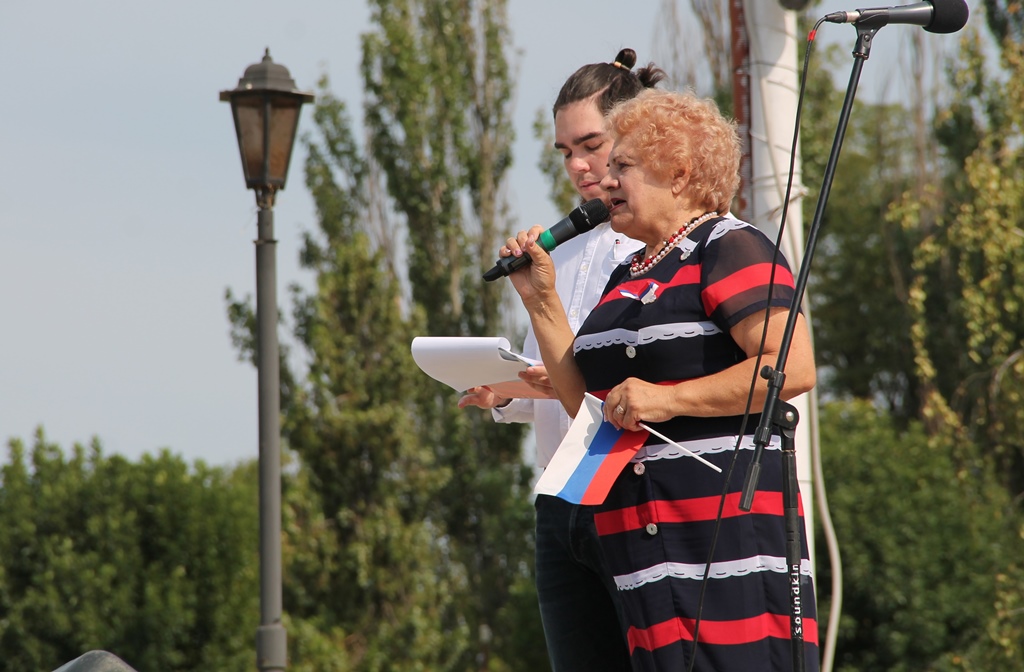 Заместитель председателя районного Совета ветеранов, Почетный гражданин города Темрюка Валентина Садовская от имени старшего поколения пожелала всем доброго здоровья и мирного неба над головой.