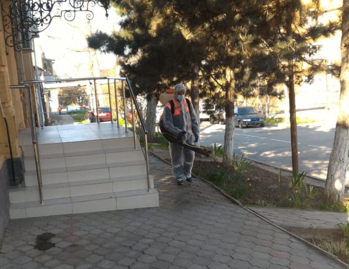 В Темрюкском районе продолжается дезинфекция общественных мест с помощью специальных средств, рекомендованных Роспотребнадзором.