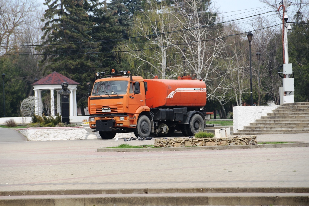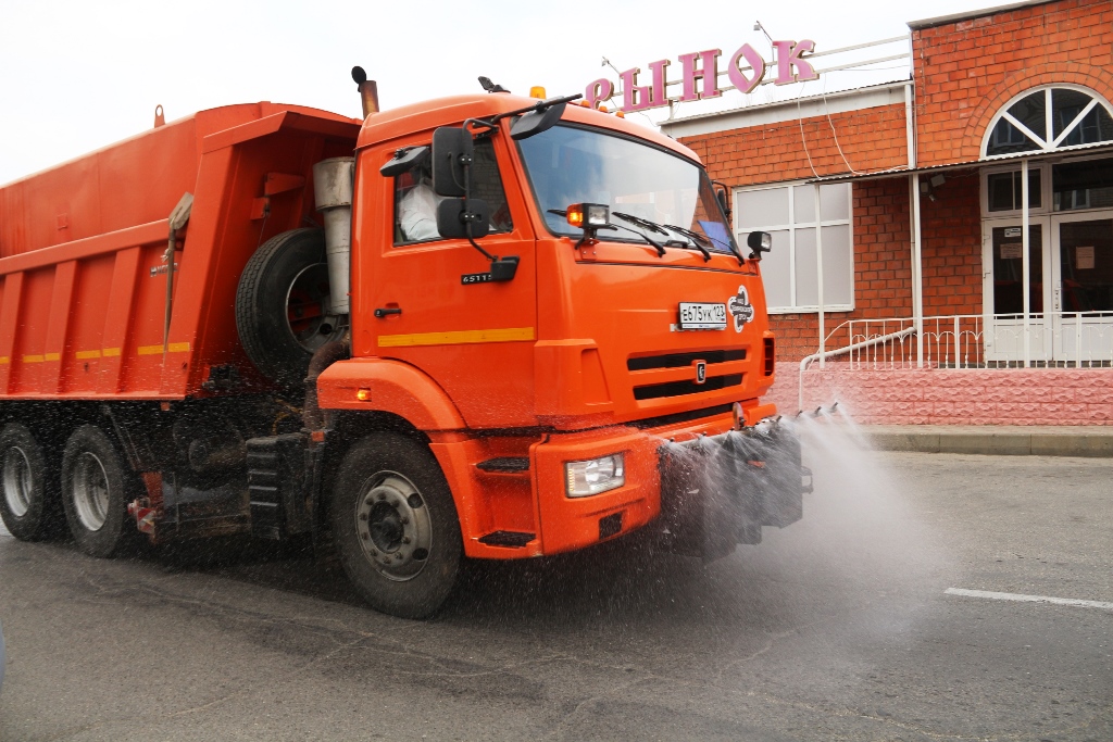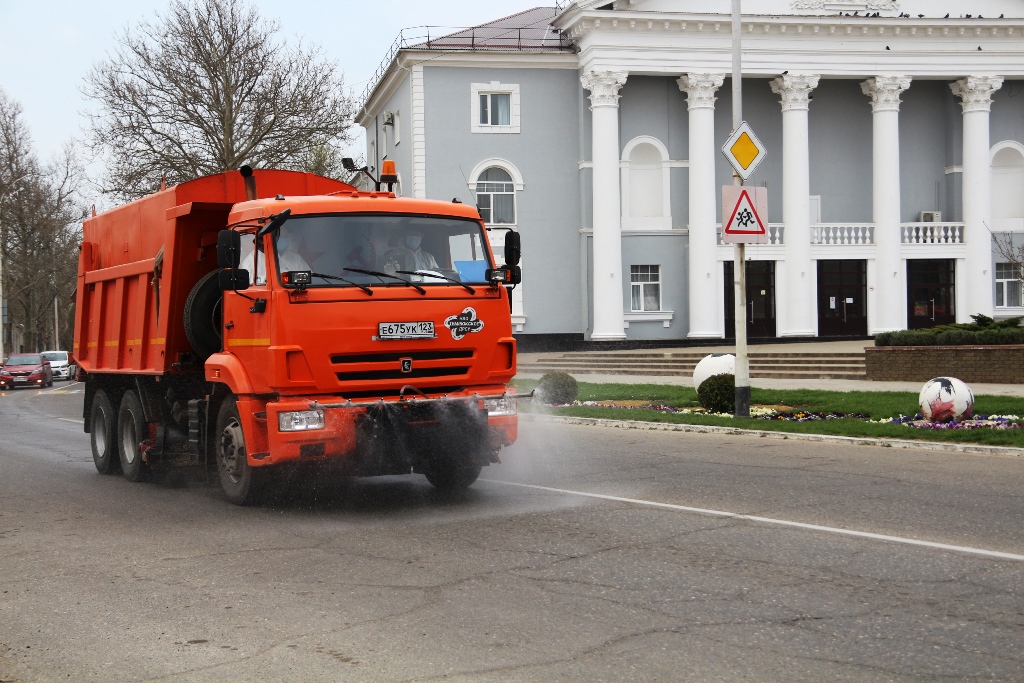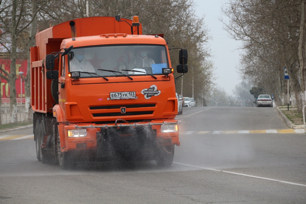 В целях профилактики распространения коронавируса здесь провели обработку улиц специальным средством. При помощи спецтехники сотрудники НАО «Темрюкское ДРСУ» выполнили промывку и дезинфекцию дорог, парковочного пространства, автобусных остановок, территорию районной больницы и торговых центров.
