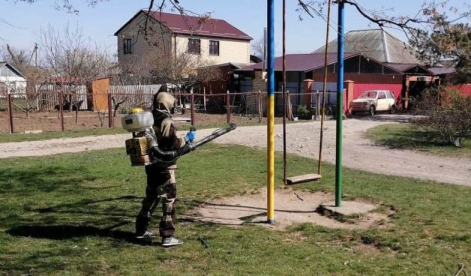Специалисты коммунальных служб Темрюкского района в целях профилактики массового распространения коронавируса ежедневно дезинфицируют общественные территории.