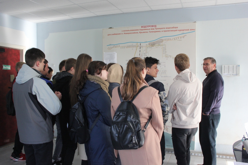 - “Троицкий групповой водопровод” выбран для посещения не случайно. Это один из крупнейших водоканалов Юга России. Ежегодно в города Новороссийск, Крымск и Геленджик, а также населенные пункты Крымского района и Черноморского побережья подается более 48 млн кубометров питьевой воды. Показывая современное производство, мы рассказываем ребятам о том, что стоит за используемой в быту водой, сколько труда вкладывается в добычу, очистку и транспортировку жизненно важного природного ресурса. А также мы помогаем с выбором будущей профессии и демонстрируем, насколько сегодня важно использование эффективных энергосберегающих и экологических технологий», - отметил Виталий Пергун, начальник управления кадровой политики, взаимодействия со СМИ, делопроизводства и контроля ГУП КК «Кубаньводкомплекс».